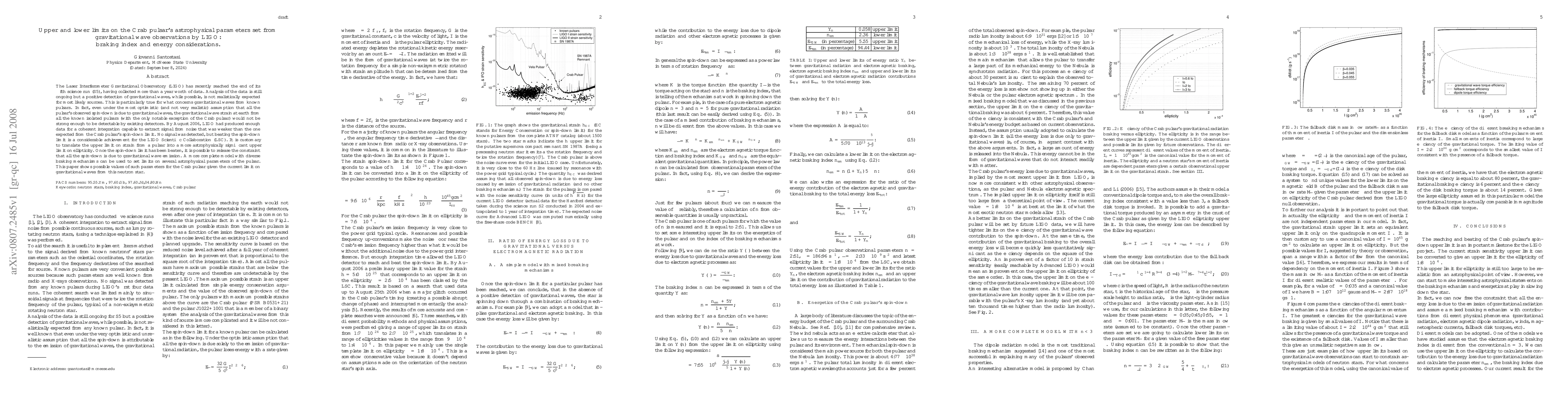 The Laser Interferometer Gravitational Observatory (LIGO) has recently reached the end of its fifth science run (S5), having collected more than a year worth of data. Analysis of the data is still ongoing but a positive detection of gravitational waves, while possible, is not realistically expected for most likely sources. This is particularly true for what concerns gravitational waves from known pulsars. In fact, even under the most optimistic (and not very realistic) assumption that all the pulsar's observed spin-down is due to gravitational waves, the gravitational wave strain at earth from all the known isolated pulsars (with the only notable exception of the Crab pulsar) would not be strong enough to be detectable by existing detectors. By August 2006, LIGO had produced enough data for a coherent integration capable to extract signal from noise that was weaker than the one expected from the Crab pulsar's spin-down limit. No signal was detected, but beating the spin-down limit is a considerable achievement for the LIGO Scientific Collaboration (LSC). It is customary to translate the upper limit on strain from a pulsar into a more astrophysically significant upper limit on ellipticity. Once the spin-down limit has been beaten, it is possible to release the constraint that all the spin-down is due to gravitational wave emission. A more complete model with diverse braking mechanisms can be used to set limits on several astrophysical parameters of the pulsar. This paper shows possible values of such parameters for the Crab pulsar given the current limit on gravitational waves from this neutron star.