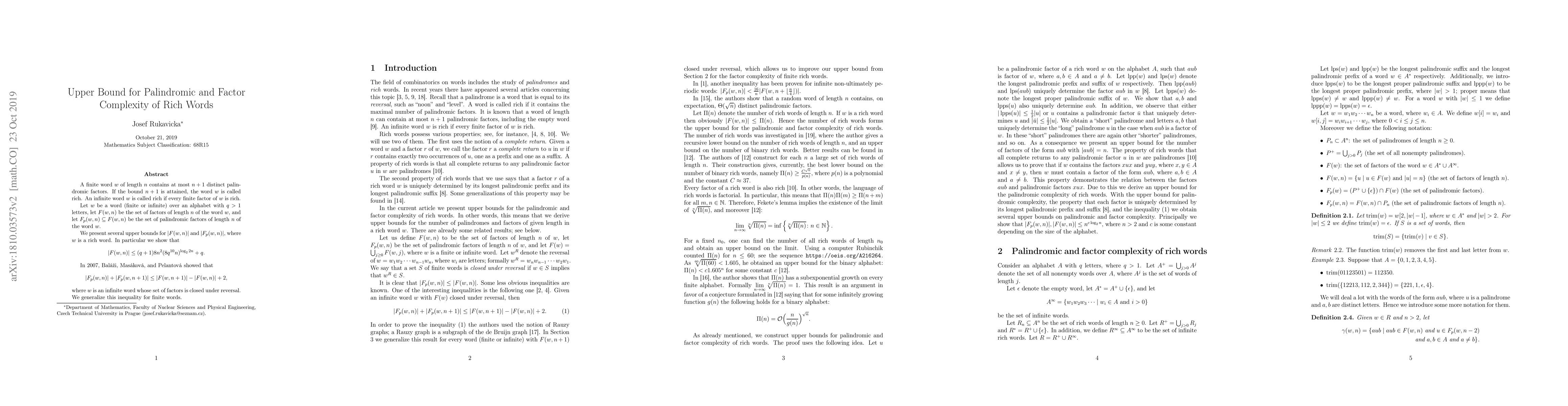 A finite word $w$ of length $n$ contains at most $n+1$ distinct palindromic factors. If the bound $n+1$ is attained, the word $w$ is called rich. An infinite word $w$ is called rich if every finite factor of $w$ is rich. Let $w$ be a word (finite or infinite) over an alphabet with $q>1$ letters, let $F(w,n)$ be the set of factors of length $n$ of the word $w$, and let $F_p(w,n)\subseteq F(w,n)$ be the set of palindromic factors of length $n$ of the word $w$. We present several upper bounds for $| F(w,n)|$ and $| F_p(w,n)|$, where $w$ is a rich word. In particular we show that \[| F(w,n)| \leq (q+1)8n^2(8q^{10}n)^{\log_2{2n}}+q\mbox{.}\] In 2007, Bal{\'a}{\v z}i, Mas{\'a}kov{\'a}, and Pelantov{\'a} showed that \[| F_p(w,n)| +| F_p(w,n+1)| \leq | F(w,n+1)|-| F(w,n)|+2\mbox{,}\] where $w$ is an infinite word whose set of factors is closed under reversal. We generalize this inequality for finite words.