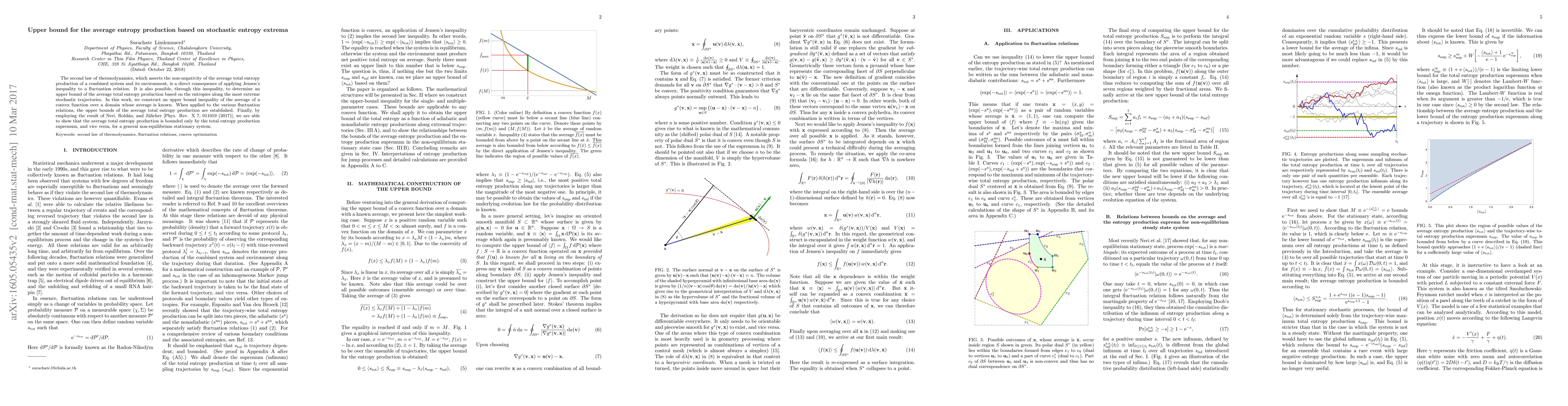 The second law of thermodynamics, which asserts the non-negativity of the average total entropy production of a combined system and its environment, is a direct consequence of applying Jensen's inequality to a fluctuation relation. It is also possible, through this inequality, to determine an upper bound of the average total entropy production based on the entropies along the most extreme stochastic trajectories. In this work, we construct an upper bound inequality of the average of a convex function over a domain whose average is known. When applied to the various fluctuation relations, the upper bounds of the average total entropy production are established. Finally, by employing the result of Neri, Rold\'an, and J\"ulicher [Phys. Rev. X 7, 011019 (2017)], we are able to show that the average total entropy production is bounded only by the total entropy production supremum, and vice versa, for a general non-equilibrium stationary system.