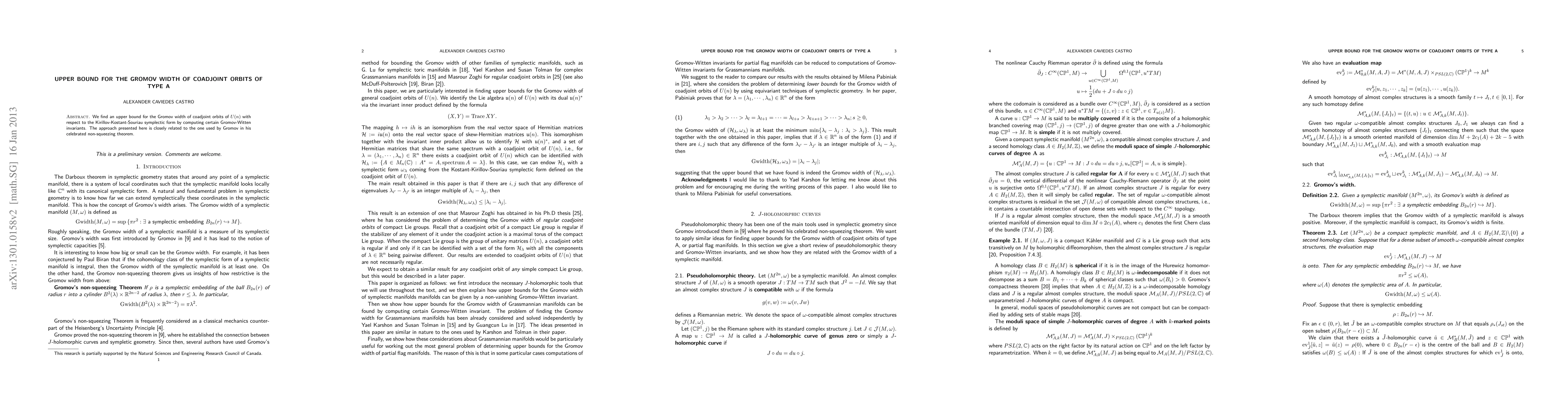 This research determines an upper limit for the Gromov width of coadjoint orbits of U(n) using Gromov-Witten invariants, extending Gromov's techniques from his non-squeezing theorem. The study focuses on the symplectic form introduced by Kirillov, Kostant, and Souriau.