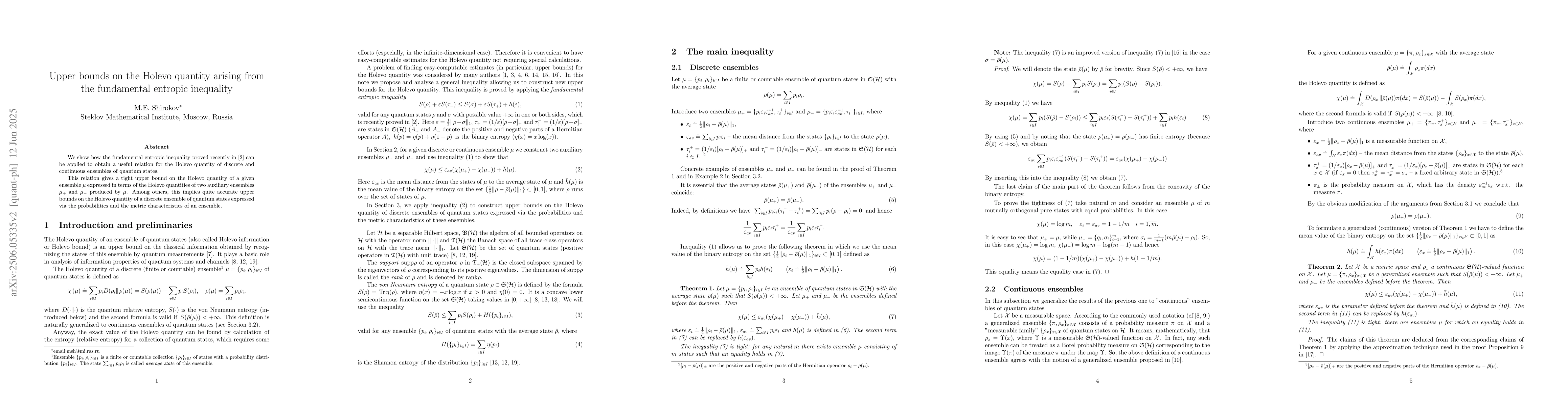 Researchers used a fundamental entropic inequality to create an upper bound on the Holevo quantity of quantum states, providing a more accurate estimate for discrete ensembles of quantum states.