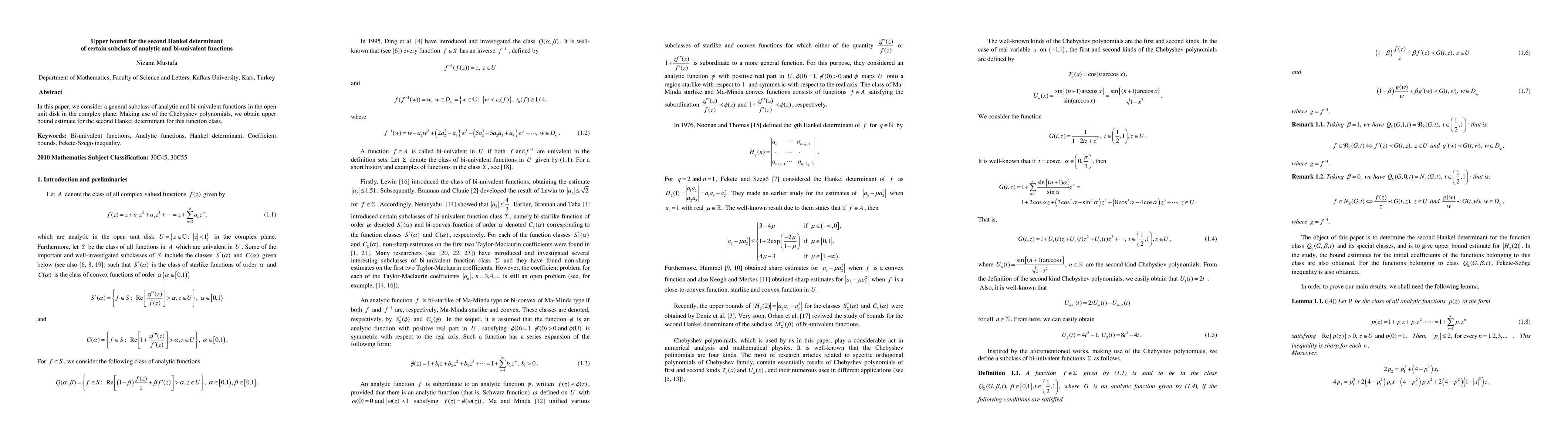 This paper explores a specific subclass of analytic and bi-univalent functions in the complex unit disk, and utilizes Chebyshev polynomials to derive an upper bound for the second Hankel determinant of these functions.