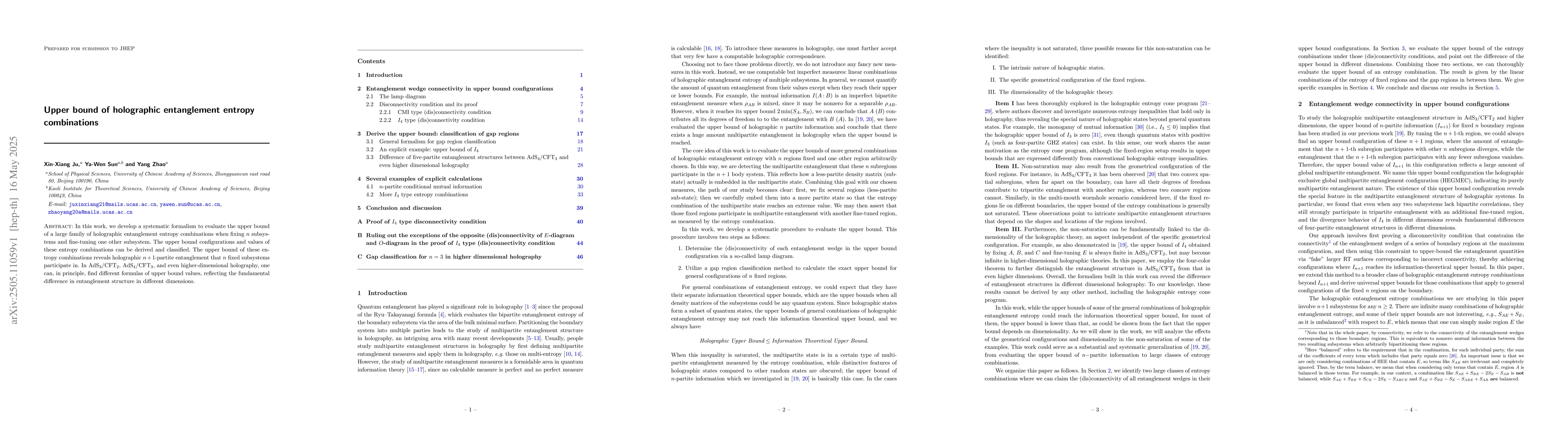 The paper presents a systematic formalism for calculating upper bounds of holographic entanglement entropy combinations, classifying their configurations and values.