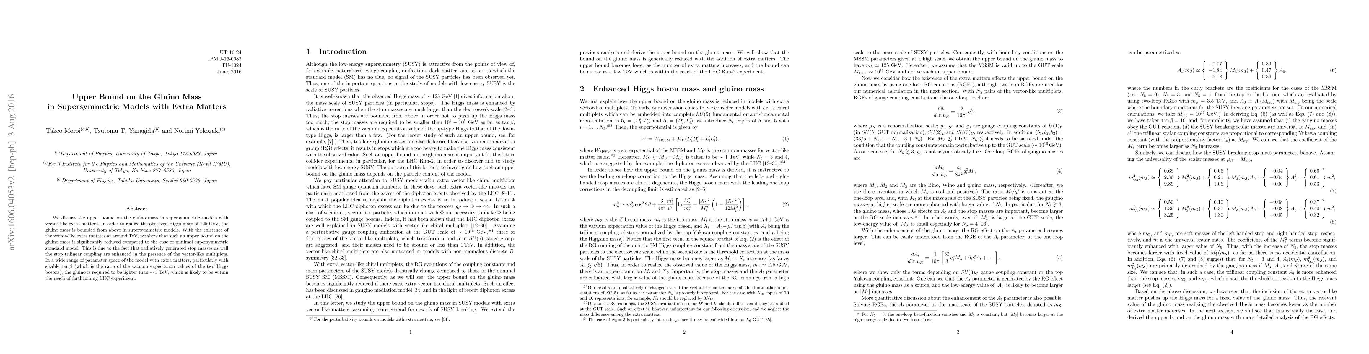 This paper investigates the upper limit of the gluino mass in supersymmetric models incorporating vector-like extra matters, demonstrating that the presence of these extra matters significantly reduces the upper bound compared to the minimal supersymmetric standard model, potentially making the gluino lighter than 3 TeV and detectable at future LHC experiments.