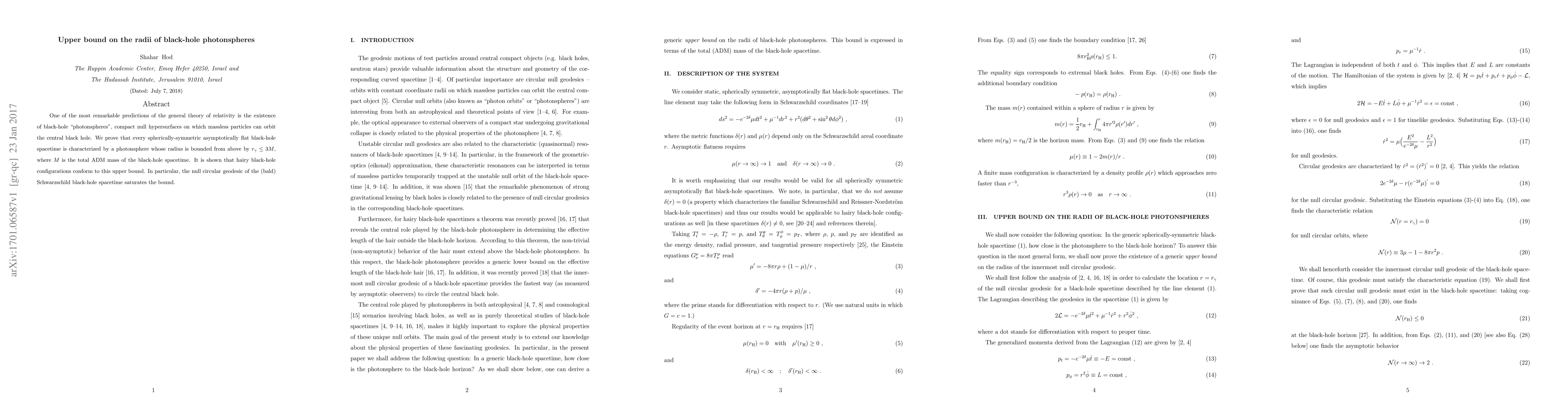 One of the most remarkable predictions of the general theory of relativity is the existence of black-hole "photonspheres", compact null hypersurfaces on which massless particles can orbit the central black hole. We prove that every spherically-symmetric asymptotically flat black-hole spacetime is characterized by a photonsphere whose radius is bounded from above by $r_{\gamma} \leq 3M$, where $M$ is the total ADM mass of the black-hole spacetime. It is shown that hairy black-hole configurations conform to this upper bound. In particular, the null circular geodesic of the (bald) Schwarzschild black-hole spacetime saturates the bound.