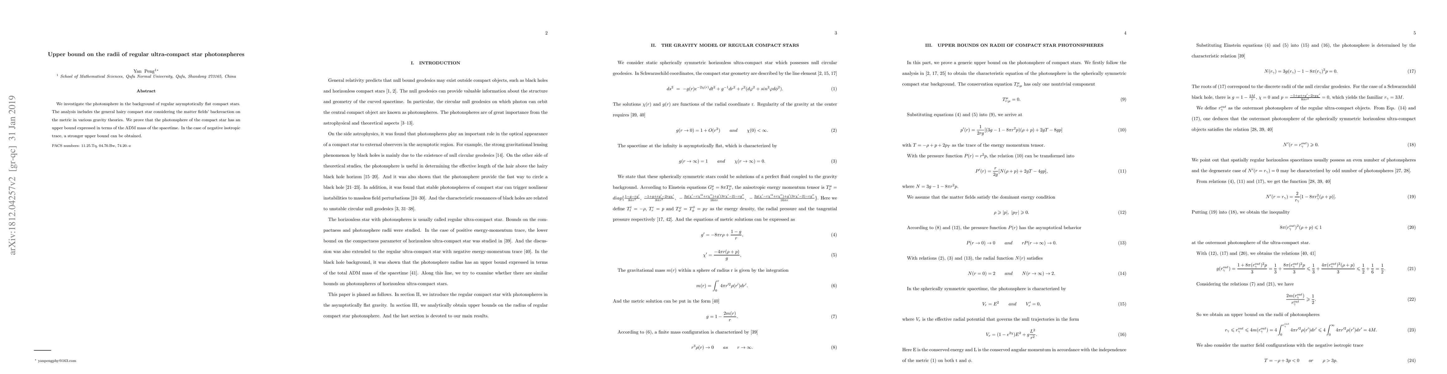 This paper establishes an upper limit on the radius of photonspheres around regular ultra-compact star spacetimes, considering backreaction from matter fields in various gravity theories. It demonstrates that the photonsphere radius is bounded by the ADM mass, with an even stricter limit under negative isotropic trace conditions.