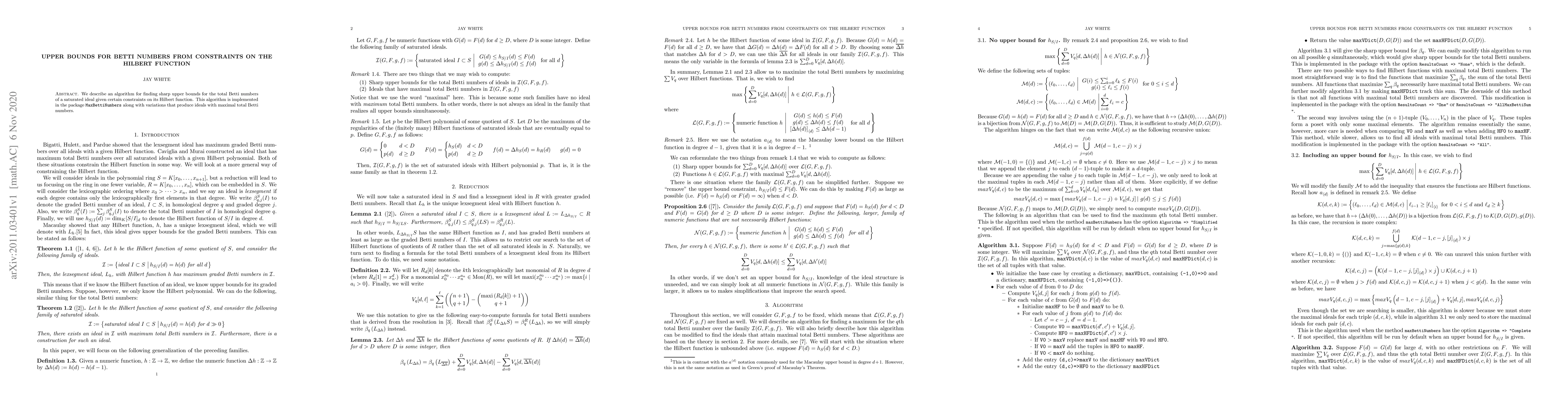 We describe an algorithm for finding sharp upper bounds for the total Betti numbers of a saturated ideal given certain constraints on its Hilbert function. This algorithm is implemented in the Macaulay2 package, MaxBettiNumbers, along with variations that produce ideals with maximal total Betti numbers.