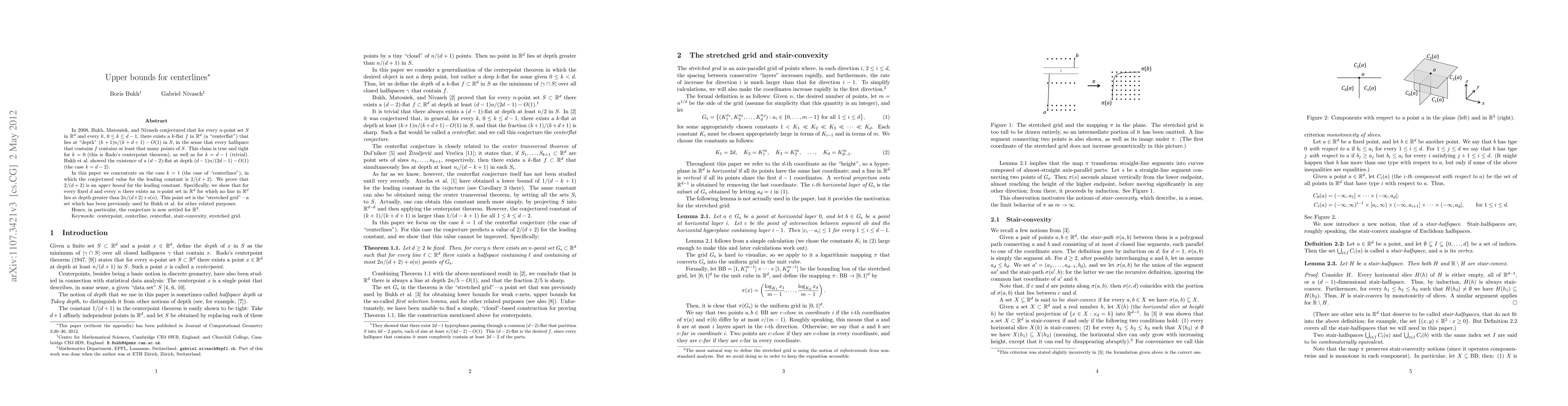In 2008, Bukh, Matousek, and Nivasch conjectured that for every n-point set S in R^d and every k, 0 <= k <= d-1, there exists a k-flat f in R^d (a "centerflat") that lies at "depth" (k+1) n / (k+d+1) - O(1) in S, in the sense that every halfspace that contains f contains at least that many points of S. This claim is true and tight for k=0 (this is Rado's centerpoint theorem), as well as for k = d-1 (trivial). Bukh et al. showed the existence of a (d-2)-flat at depth (d-1) n / (2d-1) - O(1) (the case k = d-2). In this paper we concentrate on the case k=1 (the case of "centerlines"), in which the conjectured value for the leading constant is 2/(d+2). We prove that 2/(d+2) is an *upper bound* for the leading constant. Specifically, we show that for every fixed d and every n there exists an n-point set in R^d for which no line in R^d lies at depth larger than 2n/(d+2) + o(n). This point set is the "stretched grid"---a set which has been previously used by Bukh et al. for other related purposes. Hence, in particular, the conjecture is now settled for R^3.
