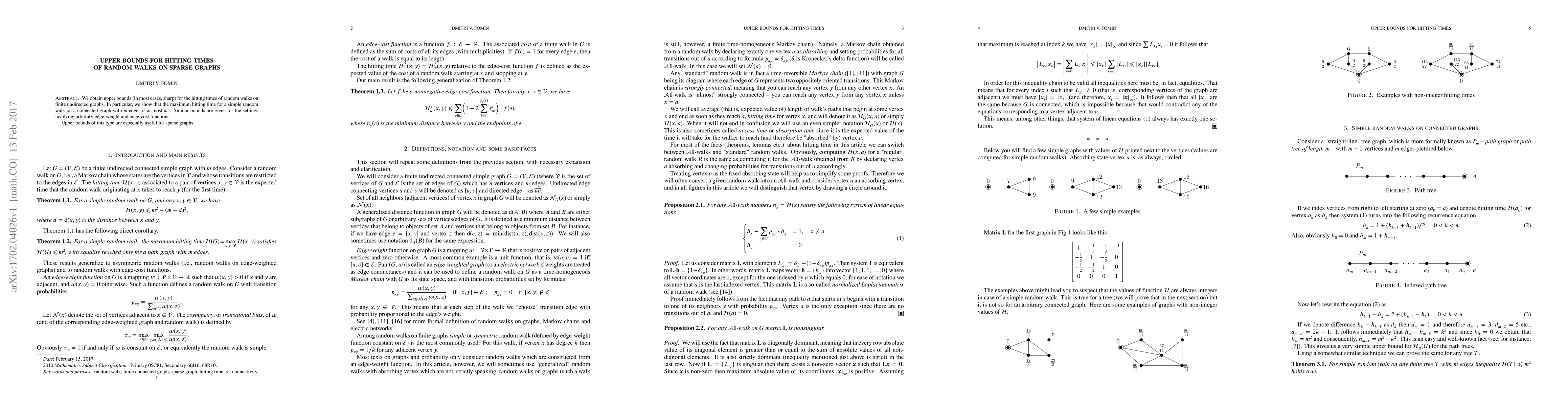 This paper establishes sharp upper bounds for the hitting times of random walks on finite undirected graphs, showing that for a connected graph with $m$ edges, the maximum hitting time is at most $m^2$. The findings also extend to graphs with arbitrary edge-weight and edge-cost functions, providing valuable insights for sparse graph analysis.