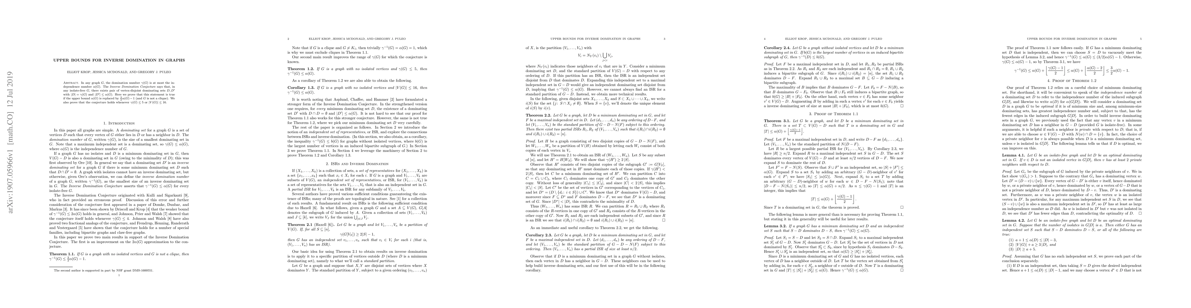 The paper introduces new theorems and corollaries that provide upper bounds for inverse domination in graphs, refining previous conjectures and offering partial solutions.