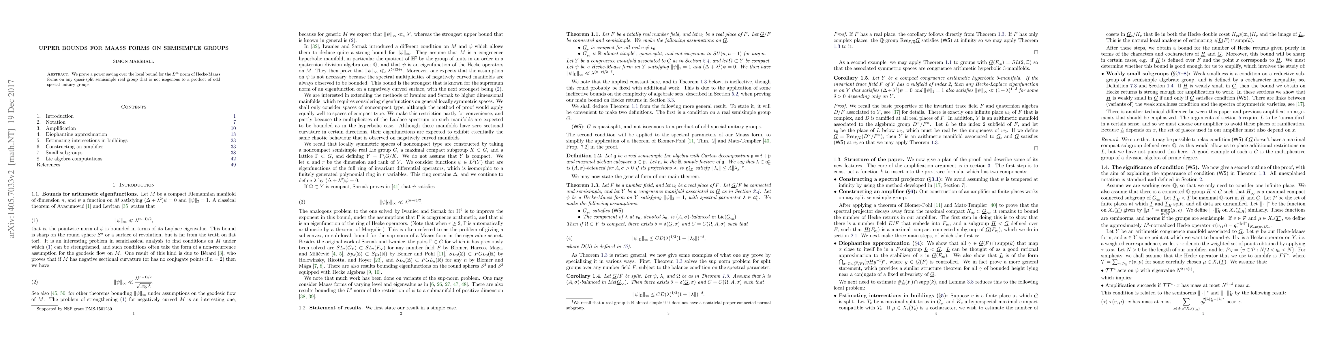 Summary: This paper establishes a power saving over the local bound for the sup norm of Hecke-Maass forms on quasi-split semisimple real groups, excluding those isogenous to a product of odd special unitary groups. The result provides a significant improvement in the upper bounds for these forms.