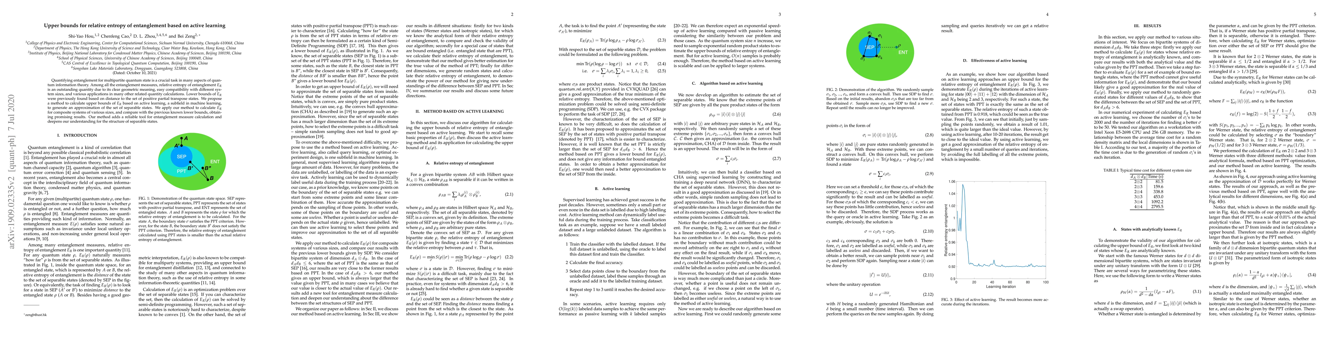 Quantifying entanglement for multipartite quantum state is a crucial task in many aspects of quantum information theory. Among all the entanglement measures, relative entropy of entanglement $E_{R}$ is an outstanding quantity due to its clear geometric meaning, easy compatibility with different system sizes, and various applications in many other related quantity calculations. Lower bounds of $E_R$ were previously found based on distance to the set of positive partial transpose states. We propose a method to calculate upper bounds of $E_R$ based on active learning, a subfield in machine learning, to generate an approximation of the set of separable states. We apply our method to calculate $E_R$ for composite systems of various sizes, and compare with the previous known lower bounds, obtaining promising results. Our method adds a reliable tool for entanglement measure calculation and deepens our understanding for the structure of separable states.