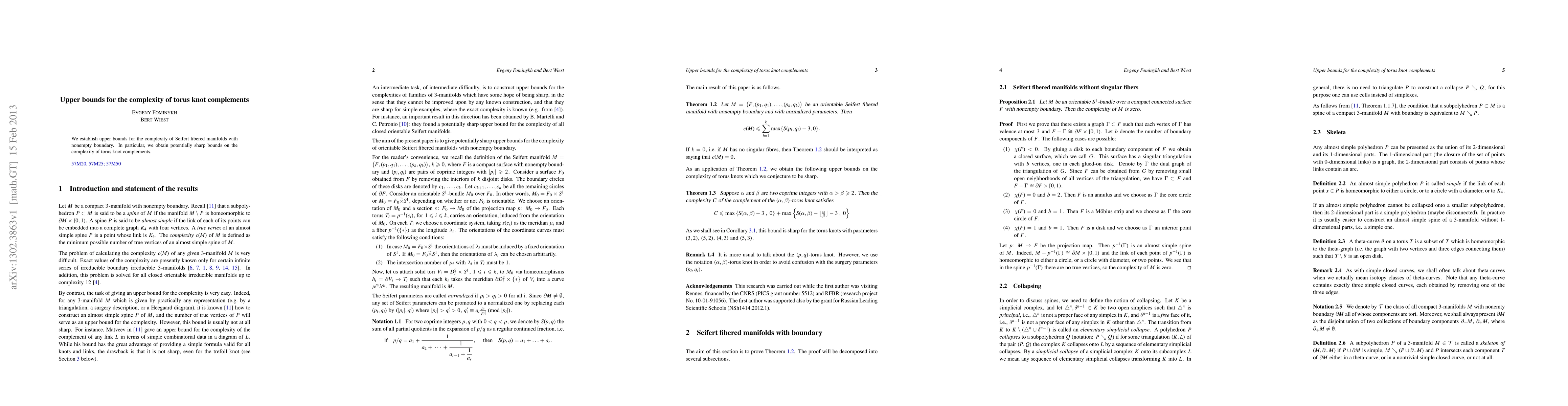 This paper establishes upper bounds for the complexity of Seifert fibered manifolds with nonempty boundary, focusing on torus knot complements, and provides potentially sharp estimates for their complexity.