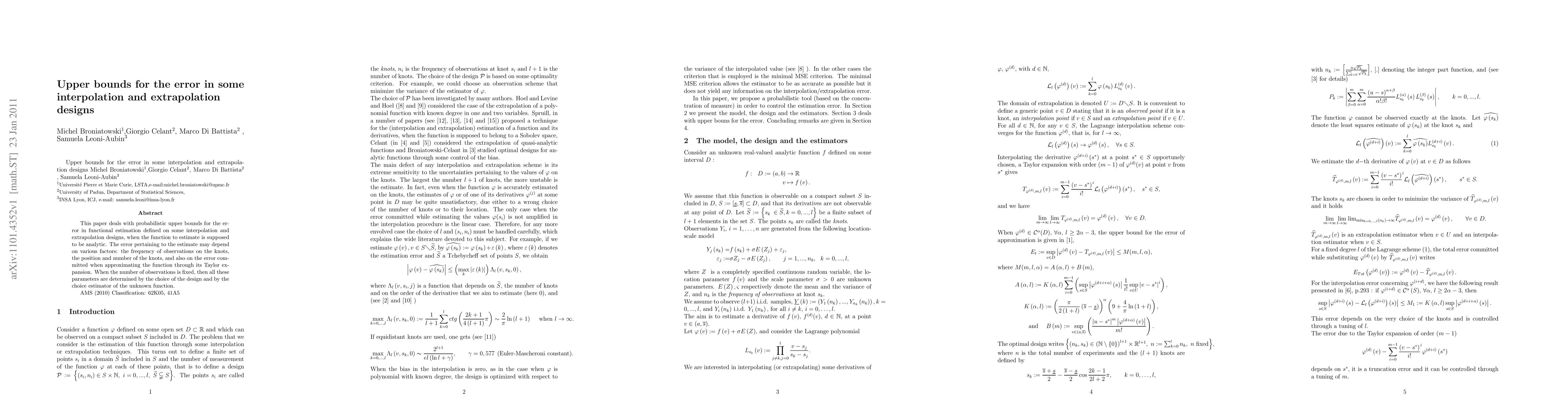 This work presents a comprehensive analysis of error bounds in interpolation and extrapolation designs, distinguishing itself from previous research by considering multiple error sources and providing a systematic approach to control these errors with high probability.