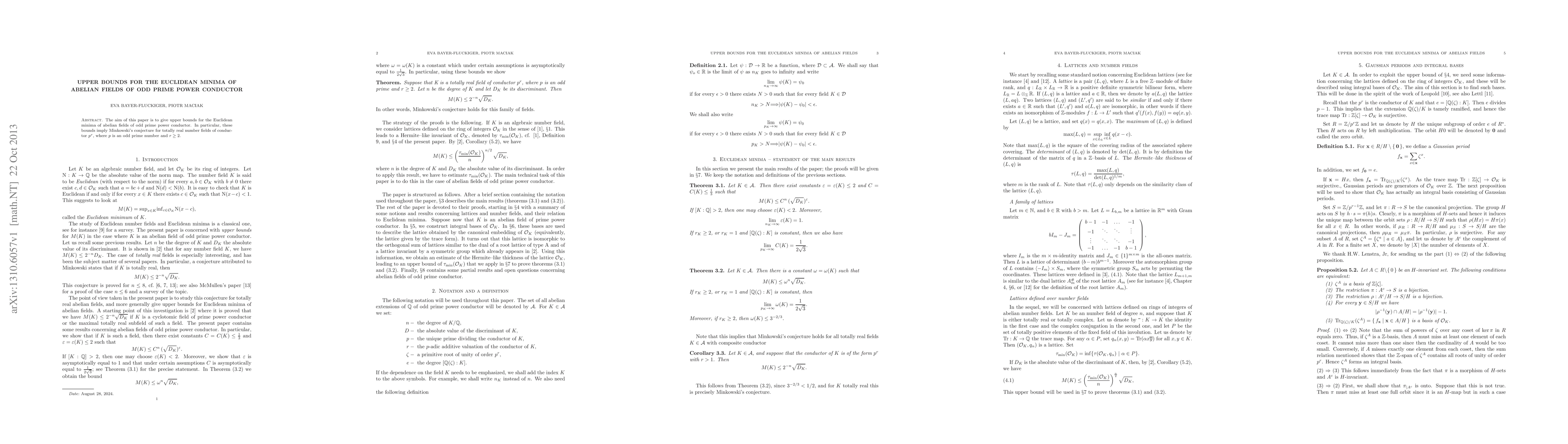 The aim of this paper is to give upper bounds for the Euclidean minima of abelian fields of odd prime conductor. In particular, these bounds imply Minkowski's conjecture for totally real number fields of conductor p^r, where p is an odd prime and r is at least 2.