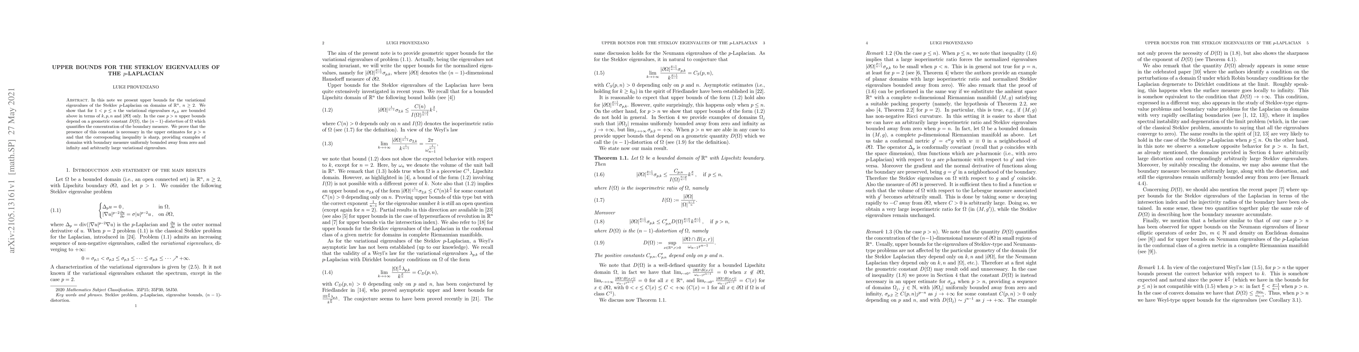 n$ upper bounds depend on a geometric constant $D(\Omega)$, the $(n-1)$-distortion of $\Omega$ which quantifies the concentration of the boundary measure. We prove that the presence of this constant is necessary in the upper estimates for $p>n$ and that the corresponding inequality is sharp, providing examples of domains with boundary measure uniformly bounded away from zero and infinity and arbitrarily large variational eigenvalues.