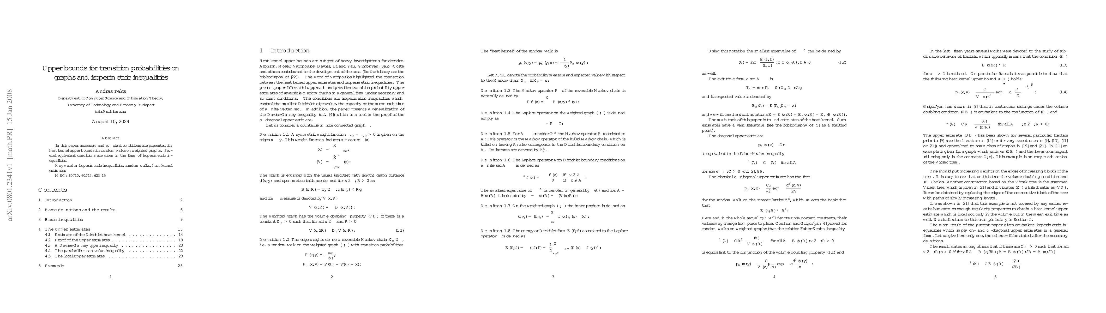 This paper establishes necessary and sufficient conditions for upper bounds on transition probabilities for random walks on weighted graphs, presenting these conditions as equivalent isoperimetric inequalities.