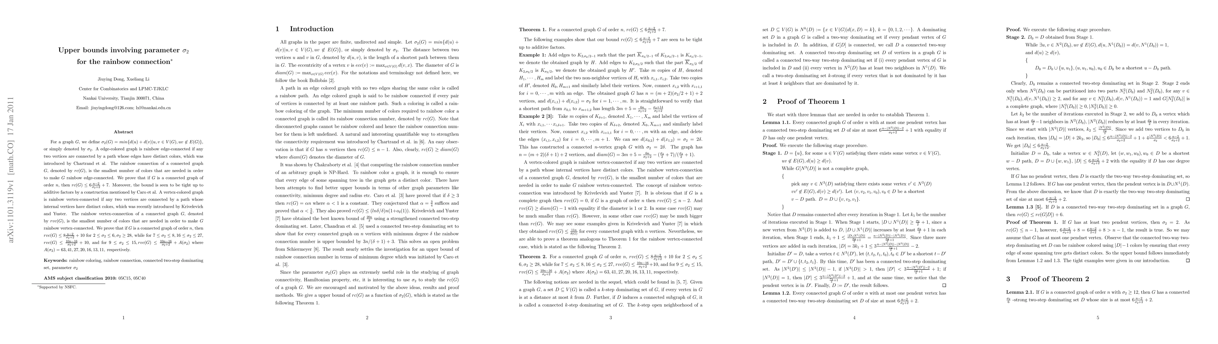 This research paper establishes upper bounds for rainbow connection (rc) and rainbow vertex-connection (rvc) in graphs, utilizing a parameter u03c3_2. It proves rc(G) ≤ 6(n-2)/(σ_2+2) + 7 and rvc(G) ≤ specific expressions based on the value of u03c3_2 for connected graphs of order n. The bounds are shown to be tight up to additive factors by constructions from previous works.