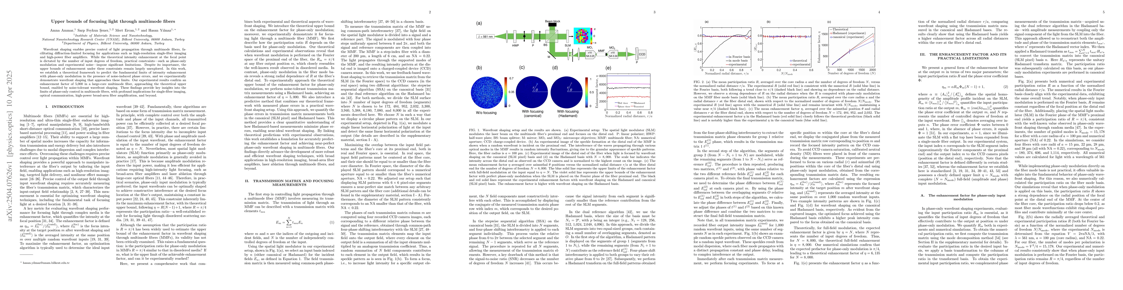 The paper introduces a methodology to predict upper bounds of focusing light through multimode fibers using phase-only modulation, combining theoretical analysis with experimental validation.