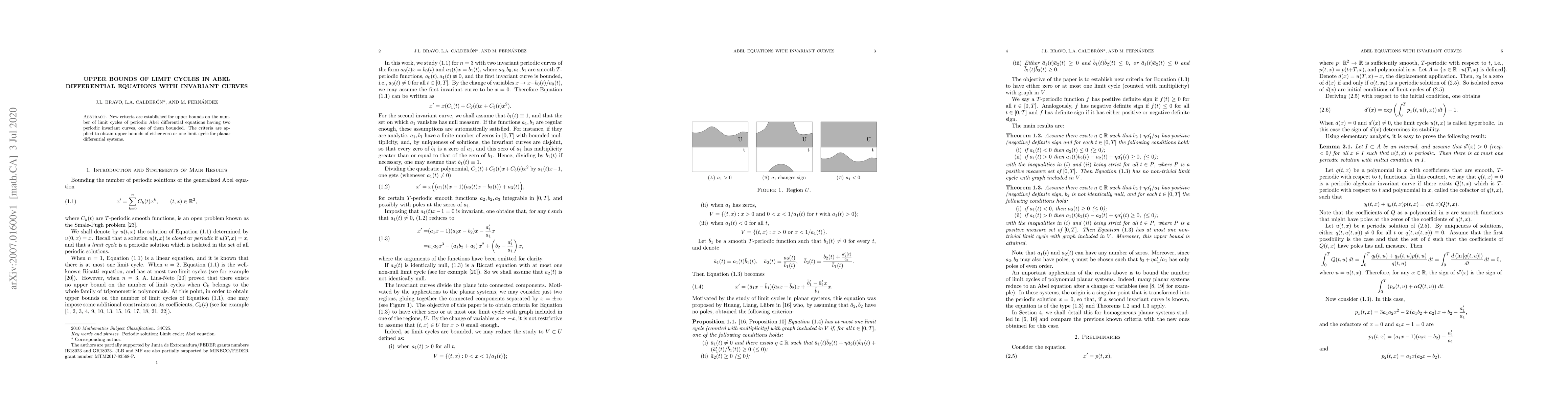 The paper establishes new criteria for upper bounds on the number of limit cycles in Abel differential equations with two periodic invariant curves, one bounded. It applies these criteria to show that such systems can have either zero or one limit cycle.