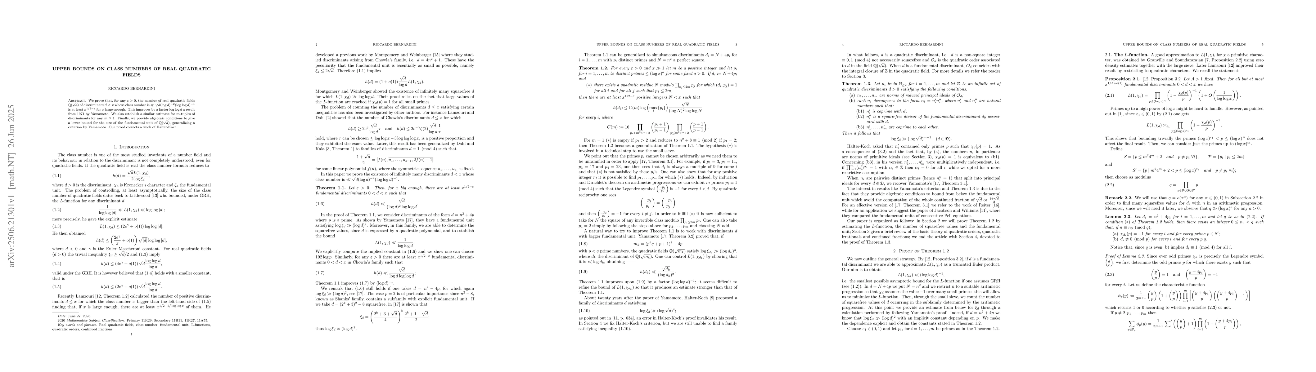 The work improves classical bounds by a logarithmic factor, corrects previous proofs, and introduces new algebraic and geometric techniques to analyze the structure of real quadratic fields.