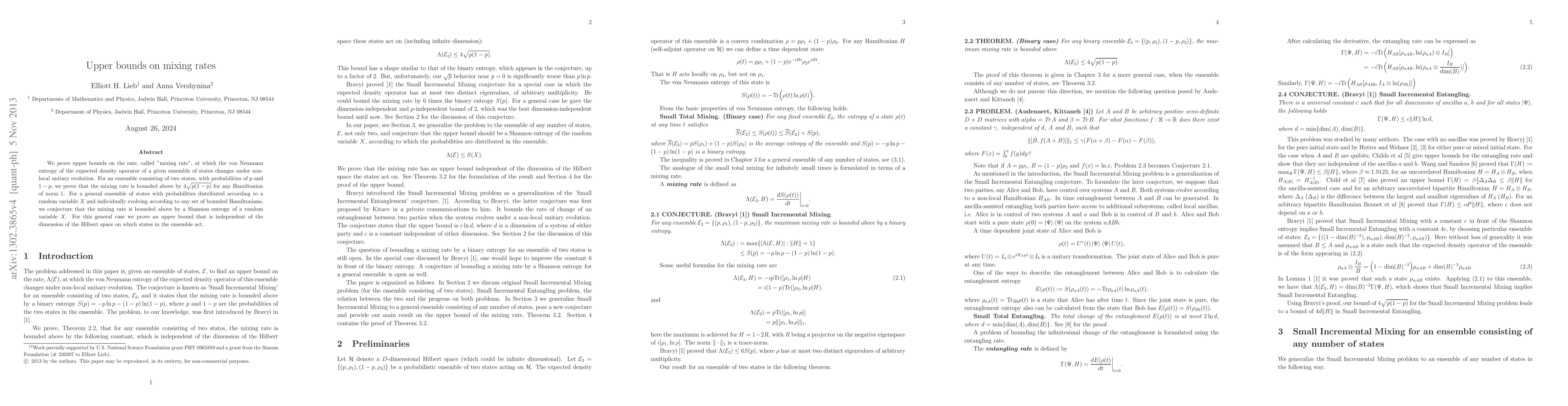 We prove upper bounds on the rate, called "mixing rate", at which the von Neumann entropy of the expected density operator of a given ensemble of states changes under non-local unitary evolution. For an ensemble consisting of two states, with probabilities of p and 1-p, we prove that the mixing rate is bounded above by 4\sqrt{p(1-p)} for any Hamiltonian of norm 1. For a general ensemble of states with probabilities distributed according to a random variable X and individually evolving according to any set of bounded Hamiltonians, we conjecture that the mixing rate is bounded above by a Shannon entropy of a random variable X. For this general case we prove an upper bound that is independent of the dimension of the Hilbert space on which states in the ensemble act.