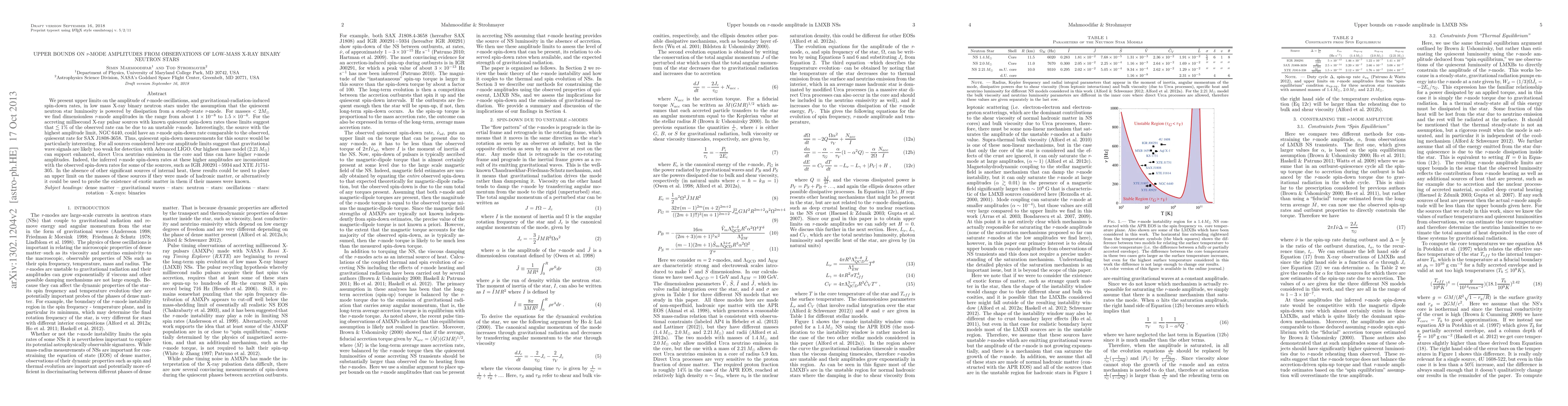 We present upper limits on the amplitude of r-mode oscillations, and gravitational-radiation-induced spin-down rates, in low mass X-ray binary neutron stars, under the assumption that the quiescent neutron star luminosity is powered by dissipation from a steady-state r-mode. For masses $< 2 M_{\odot}$ we find dimensionless r-mode amplitudes in the range from about $1\times 10^{-8}$ to $1.5\times 10^{-6}$. For the accreting millisecond X-ray pulsar sources with known quiescent spin-down rates these limits suggest that $\lesssim 1%$ of the observed rate can be due to an unstable r-mode. Interestingly, the source with the highest amplitude limit, NGC 6440, could have an r-mode spin-down rate comparable to the observed, quiescent rate for SAX J1808-3658. Thus, quiescent spin-down measurements for this source would be particularly interesting. For all sources considered here our amplitude limits suggest that gravitational wave signals are likely too weak for detection with Advanced LIGO. Our highest mass model ($2.21\, M_{\odot}$) can support enhanced, direct Urca neutrino emission in the core and thus can have higher r-mode amplitudes. Indeed, the inferred r-mode spin-down rates at these higher amplitudes are inconsistent with the observed spin-down rates for some of the sources, such as IGR J00291+5934 and XTE J1751-305. In the absence of other significant sources of internal heat, these results could be used to place an upper limit on the masses of these sources if they were made of hadronic matter, or alternatively it could be used to probe the existence of exotic matter in them if their masses were known.