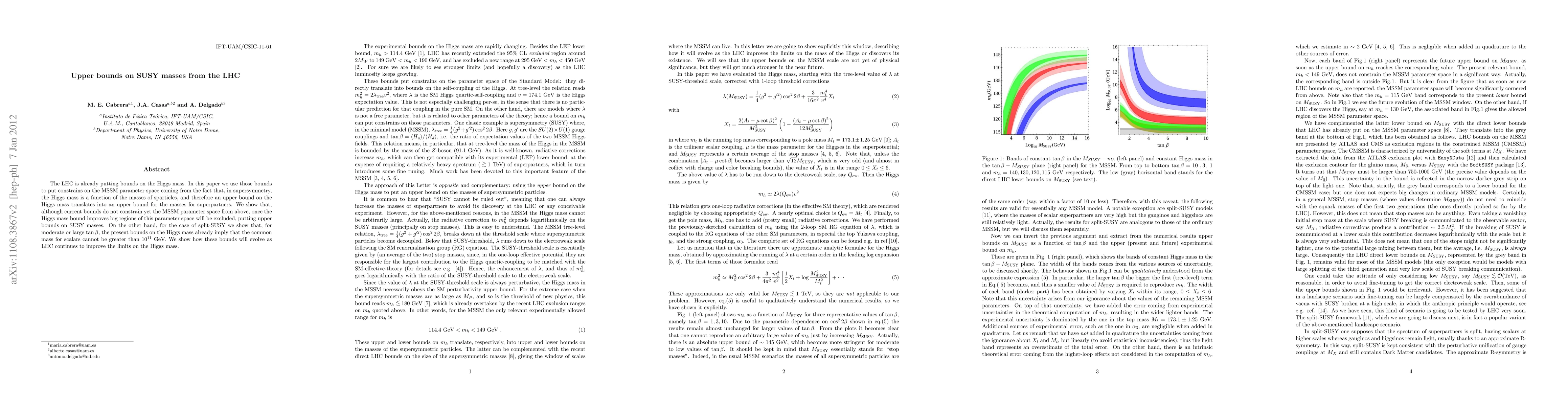 The LHC is already putting bounds on the Higgs mass. In this paper we use those bounds to put constrains on the MSSM parameter space coming from the fact that, in supersymmetry, the Higgs mass is a function of the masses of sparticles, and therefore an upper bound on the Higgs mass translates into an upper bound for the masses for superparners. We show that, although current bounds do not constrain yet the MSSM parameter space from above, once the Higgs mass bound improves big regions of this parameter space will be excluded, putting upper bounds on SUSY masses. On the other hand, for the case of split-SUSY we will show that, for moderate or large tan\beta, the present bounds on the Higgs mass already imply that the common mass for scalars cannot be greater than 10^{11} GeV. We show how these bounds will evolve as long LHC improves the limits on the Higgs mass.