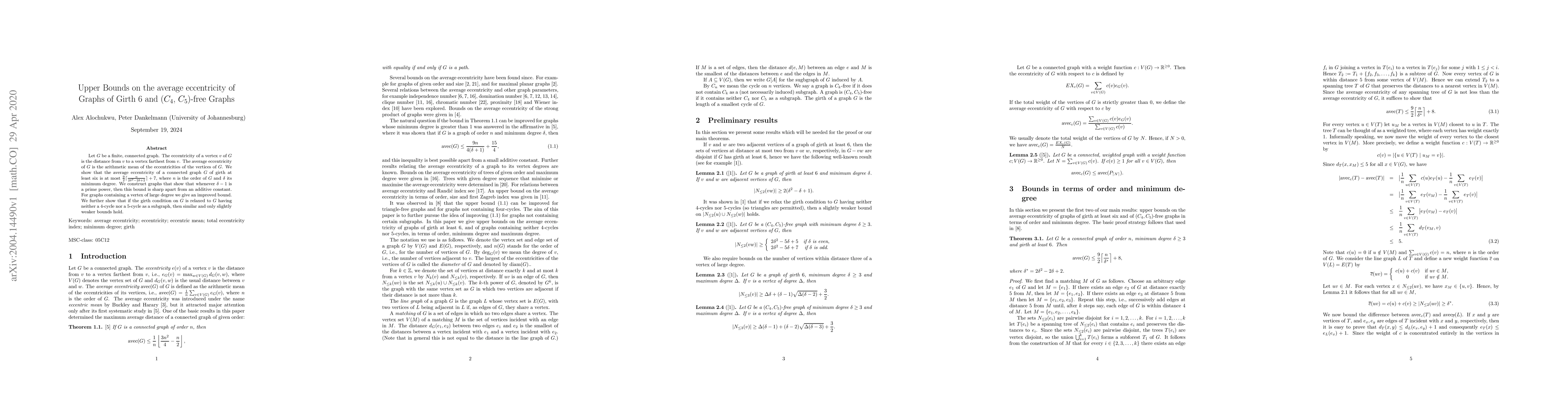 This research paper establishes upper bounds on the average eccentricity of graphs with a girth of at least 6, as well as those without 4- or 5-cycles, and provides examples where these bounds are sharp or improved.
