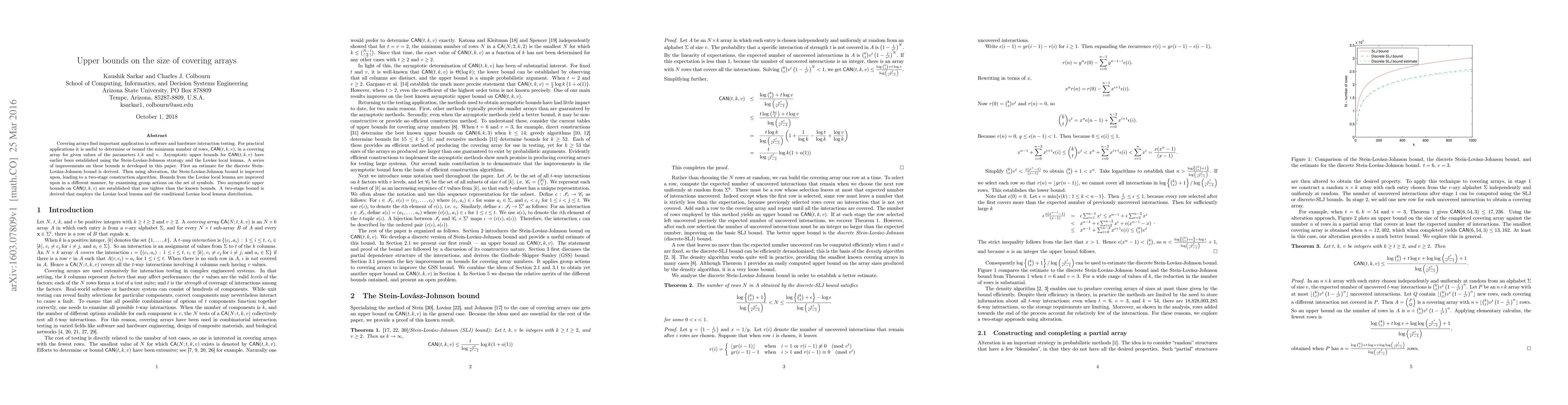 This paper develops improved asymptotic upper bounds for the size of covering arrays, CAN$(t,k,v)$, using refined versions of the Stein-Lov\'asz-Johnson strategy and the Lov\'asz local lemma, resulting in tighter bounds than previously known methods.