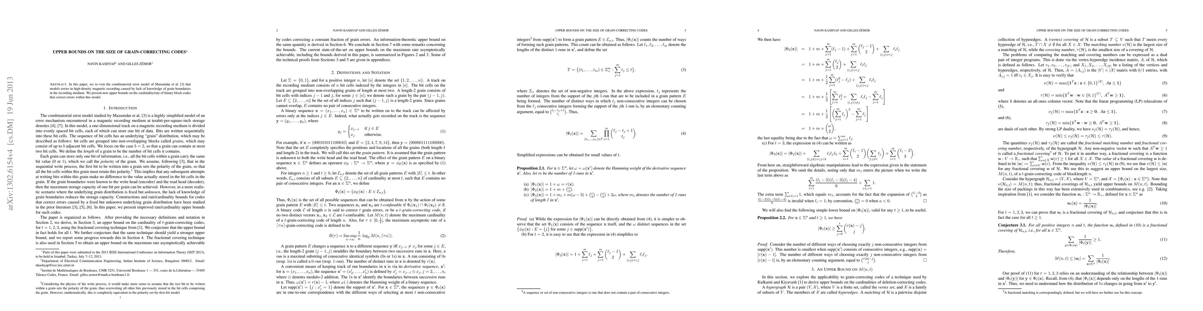 This paper revisits the combinatorial error model for high-density magnetic recording, focusing on errors due to unknown grain boundaries. It presents new upper bounds on the size and rate of binary block codes capable of correcting these errors within the specified model.