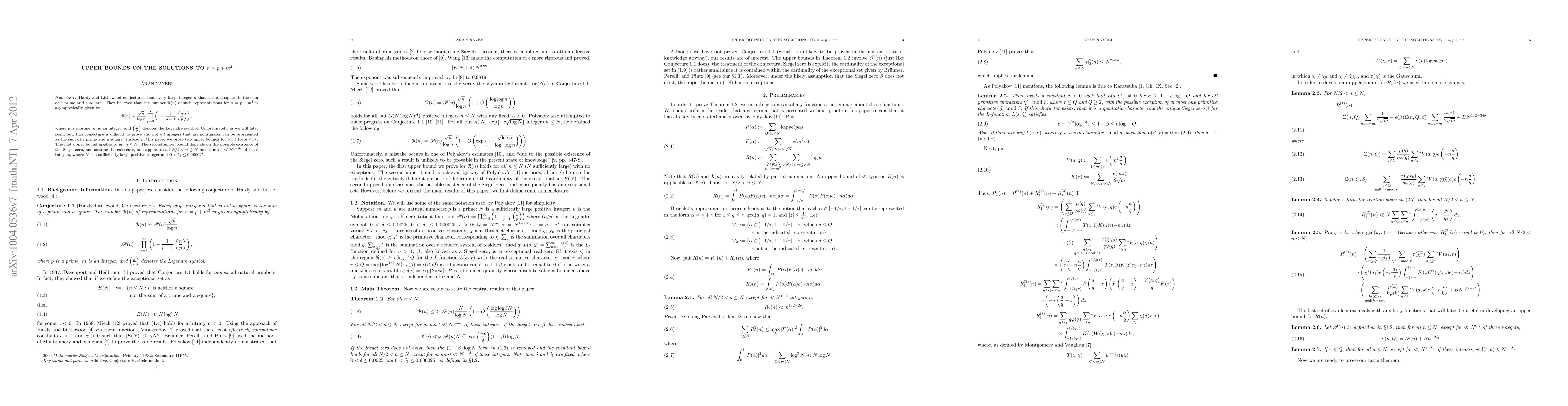 Hardy and Littlewood conjectured that every large integer $n$ that is not a square is the sum of a prime and a square. They believed that the number $\mathcal{R}(n)$ of such representations for $n = p+m^2$ is asymptotically given by \mathcal{R}(n) \sim \frac{\sqrt{n}}{\log n}\prod_{p=3}^{\infty}(1-\frac{1}{p-1}(\frac{n}{p})), where $p$ is a prime, $m$ is an integer, and $(\frac{n}{p})$ denotes the Legendre symbol. Unfortunately, as we will later point out, this conjecture is difficult to prove and not \emph{all} integers that are nonsquares can be represented as the sum of a prime and a square. Instead in this paper we prove two upper bounds for $\mathcal{R}(n)$ for $n \le N$. The first upper bound applies to \emph{all} $n \le N$. The second upper bound depends on the possible existence of the Siegel zero, and assumes its existence, and applies to all $N/2 < n \le N$ but at most $\ll N^{1-\delta_1}$ of these integers, where $N$ is a sufficiently large positive integer and $0< \delta_1 \le 0.000025$.