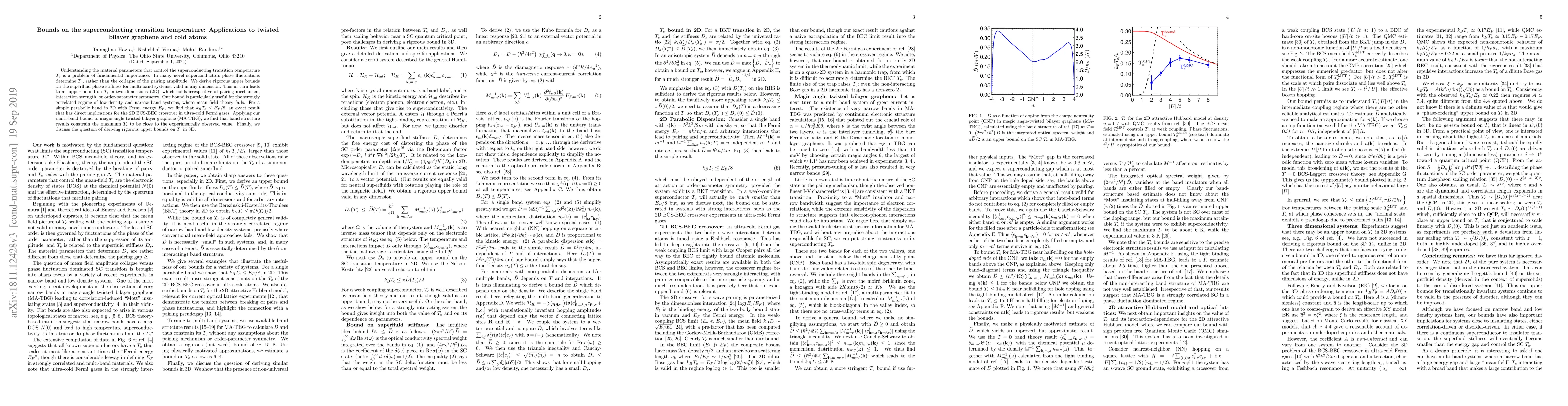 This paper derives rigorous upper bounds on the superfluid phase stiffness and the superconducting transition temperature $T_c$ for multi-band systems, showing that $k_BT_c \leq E_F/8$ for 2D systems. The findings have significant implications for understanding $T_c$ in strongly correlated systems like twisted-bilayer graphene and ultra-cold Fermi gases.