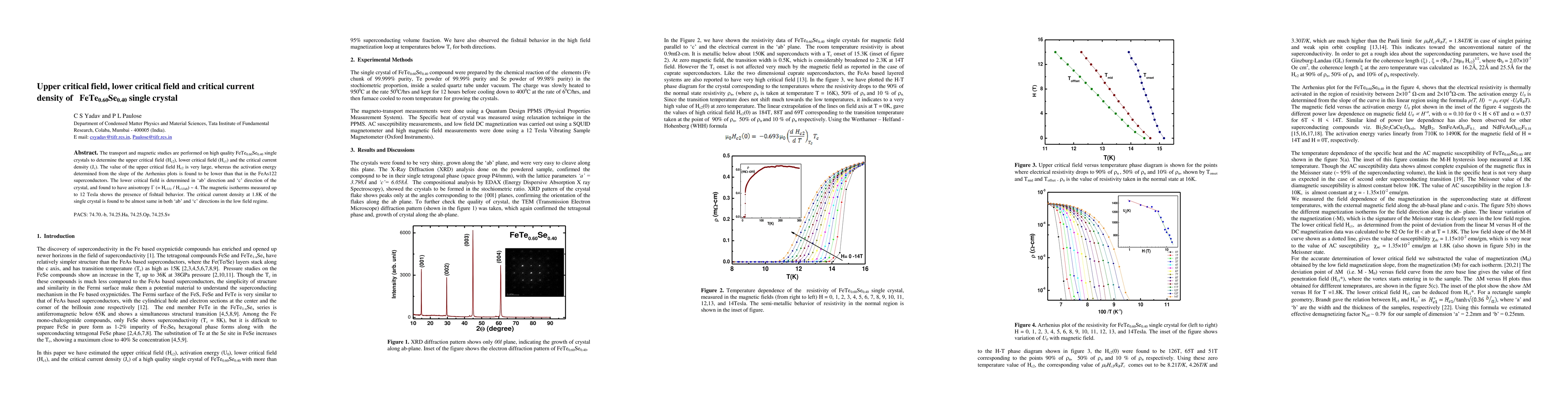 This study investigates FeTe0.60Se0.40 single crystals, finding large upper critical fields (Hc2) and lower critical fields (Hc1) with anisotropic behavior. The critical current density (Jc) is nearly equal in both ab and c directions at 1x10^5 Amp/cm^2.