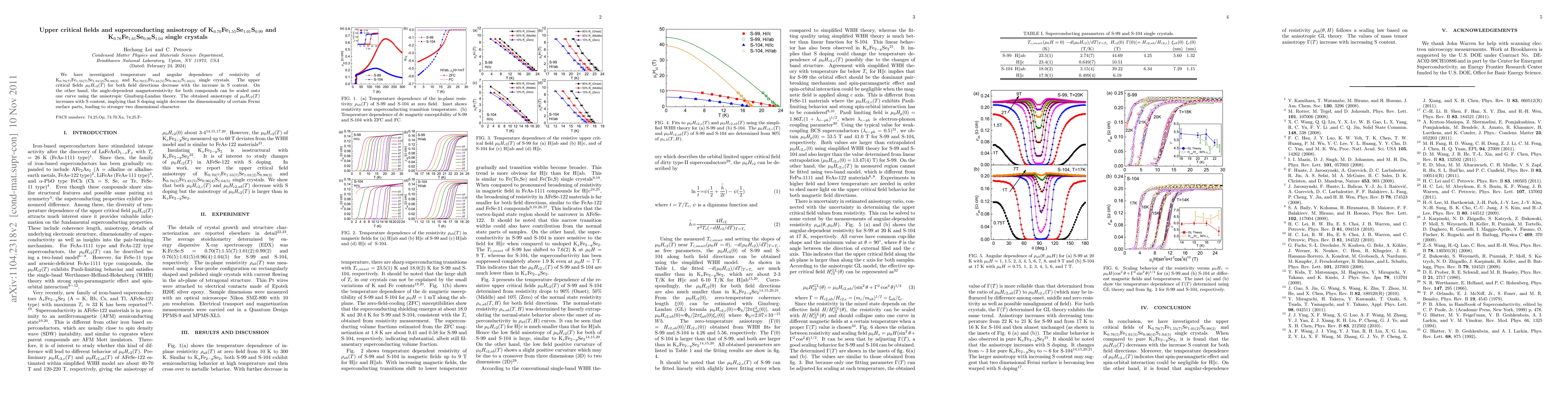 Researchers investigated two new superconducting compounds with varying sulfur content, finding that increasing sulfur content decreases upper critical fields but improves anisotropic magnetoresistivity scaling, suggesting stronger 2D Fermi surface character.