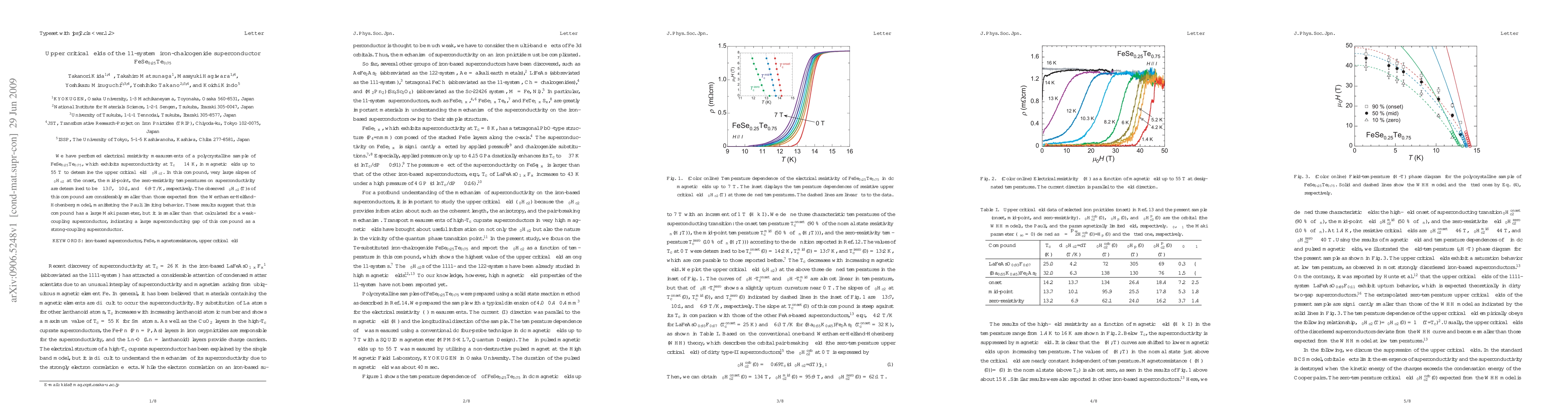 We have performed electrical resistivity measurements of a polycrystalline sample of FeSe$_{0.25}$Te$_{0.75}$, which exhibits superconductivity at $T_{\rm c} \sim 14$ K, in magnetic fields up to 55 T to determine the upper critical field $\mu_{0}H_{\rm c2}$. In this compound, very large slopes of $\mu_{0}H_{\rm c2}$ at the onset, the mid-point, the zero-resistivity temperatures on superconductivity are determined to be -13.7, -10.1, and -6.9 T/K, respectively. The observed $\mu_{0}H_{\rm c2}(T)$s of this compound are considerably smaller than those expected from the Werthamer-Helfand-Hohenberg model, manifesting the Pauli limiting behavior. These results suggest that this compound has a large Maki parameter, but it is smaller than that calculated for a weak-coupling superconductor, indicating a large superconducting gap of this compound as a strong-coupling superconductor.
