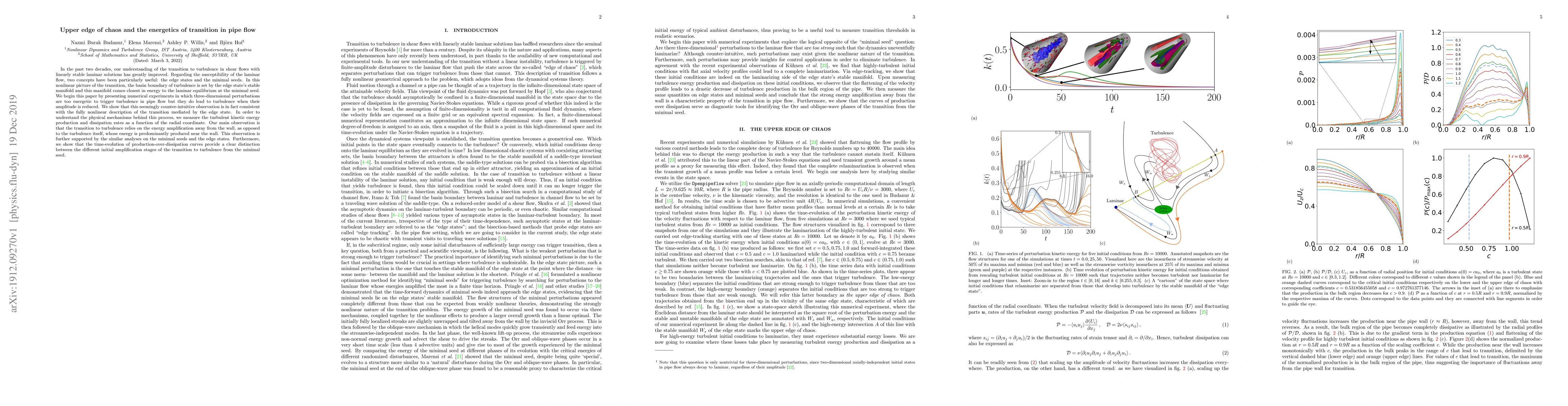 This paper investigates the transition to turbulence in pipe flow, demonstrating that three-dimensional perturbations trigger turbulence when their energy is reduced. The study reveals that energy amplification away from the wall, rather than near the wall, is crucial for the transition, supported by analyses of edge states and minimal seeds.