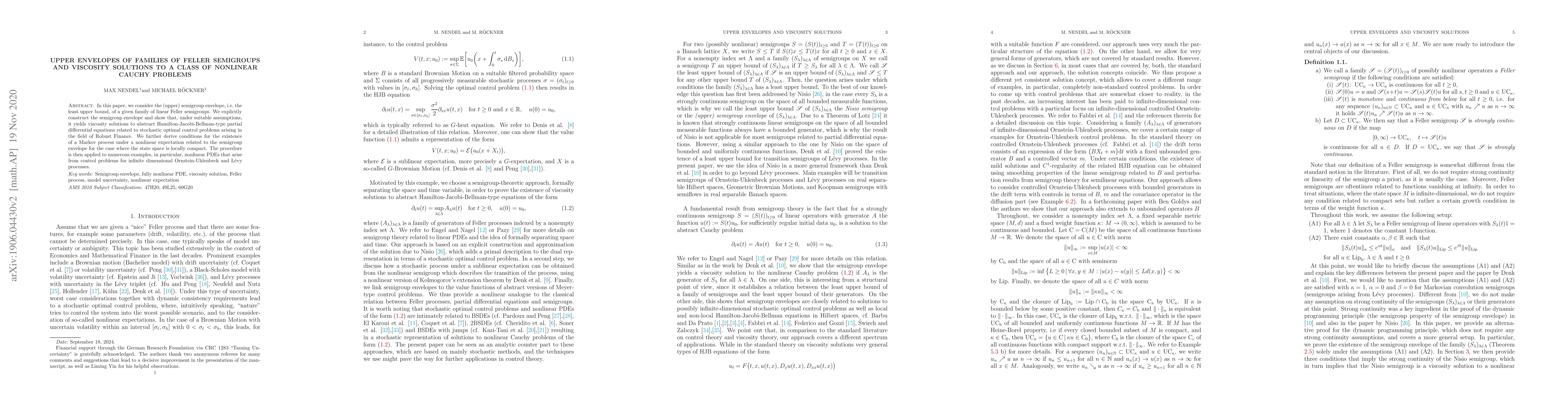 Researchers develop a method to create viscosity solutions from families of linear Feller semigroups, enabling solutions to control problems in finance, and explore its application to various nonlinear partial differential equations.