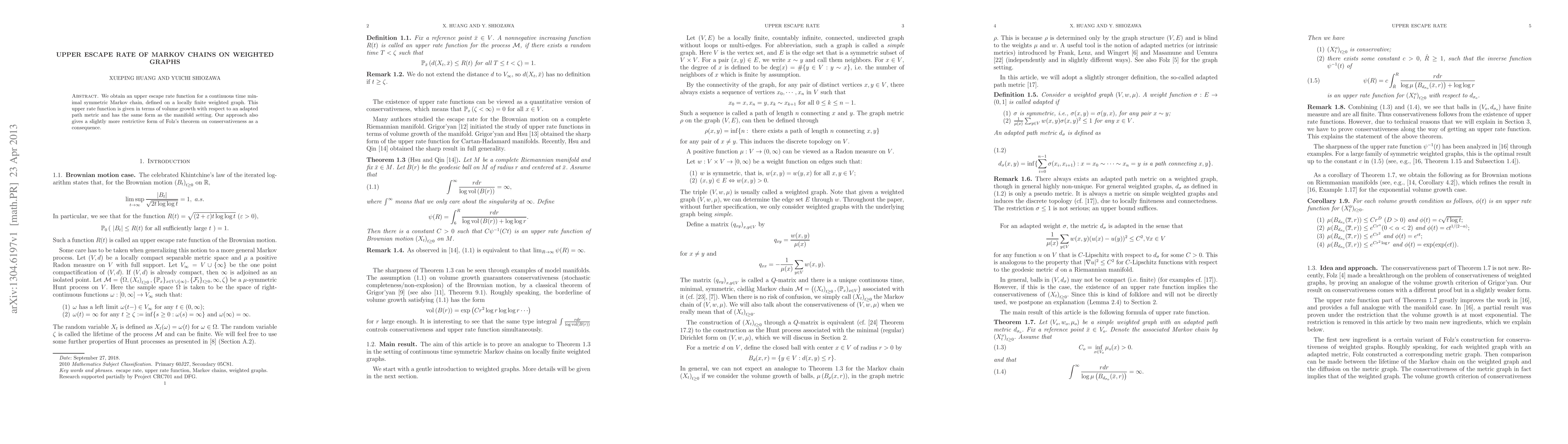 This paper establishes an upper escape rate function for continuous time Markov chains on weighted graphs, relating it to volume growth and yielding a refined version of Folz's theorem on conservativeness.