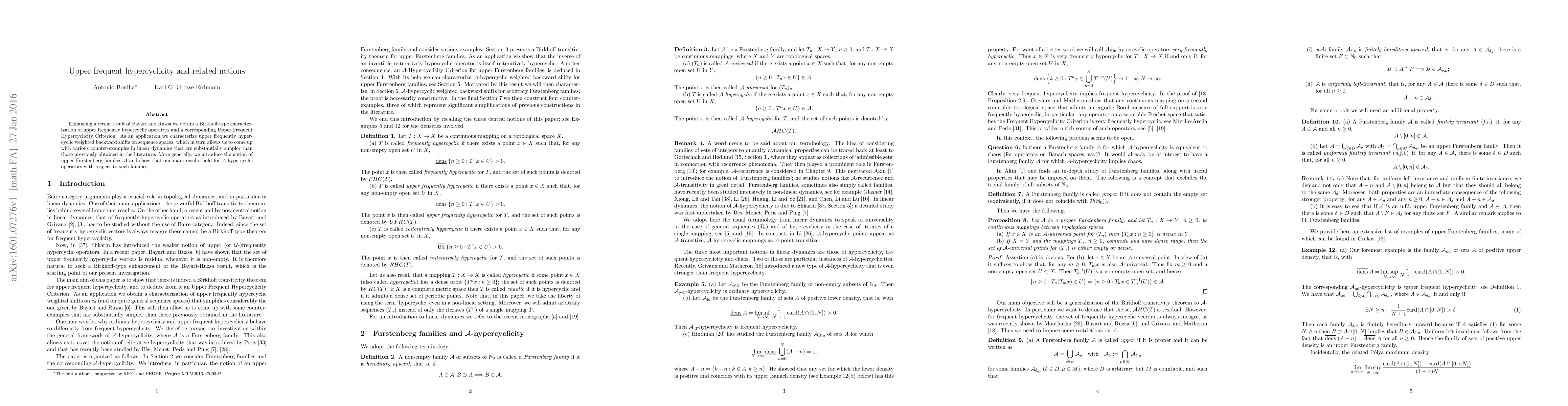 This paper extends a result by Bayart and Ruzsa to characterize upper frequently hypercyclic operators through a Birkhoff-type theorem and introduces an Upper Frequent Hypercyclicity Criterion. It applies this framework to weighted backward shifts on sequence spaces, providing simpler counterexamples in linear dynamics.