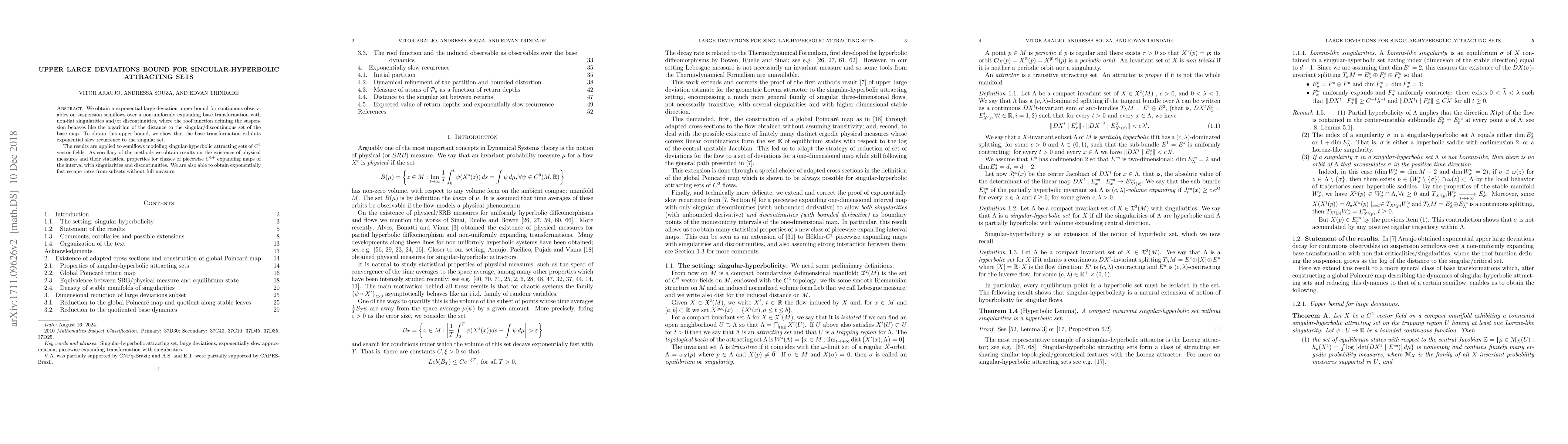 This research establishes an exponential large deviation upper bound for continuous observables on suspension semiflows with singular-hyperbolic attracting sets, demonstrating the base transformation's exponential slow recurrence to the singular set. The findings apply to $C^2$ vector fields and result in the existence of physical measures for piecewise $C^{1+}$ expanding maps with singularities and discontinuities.