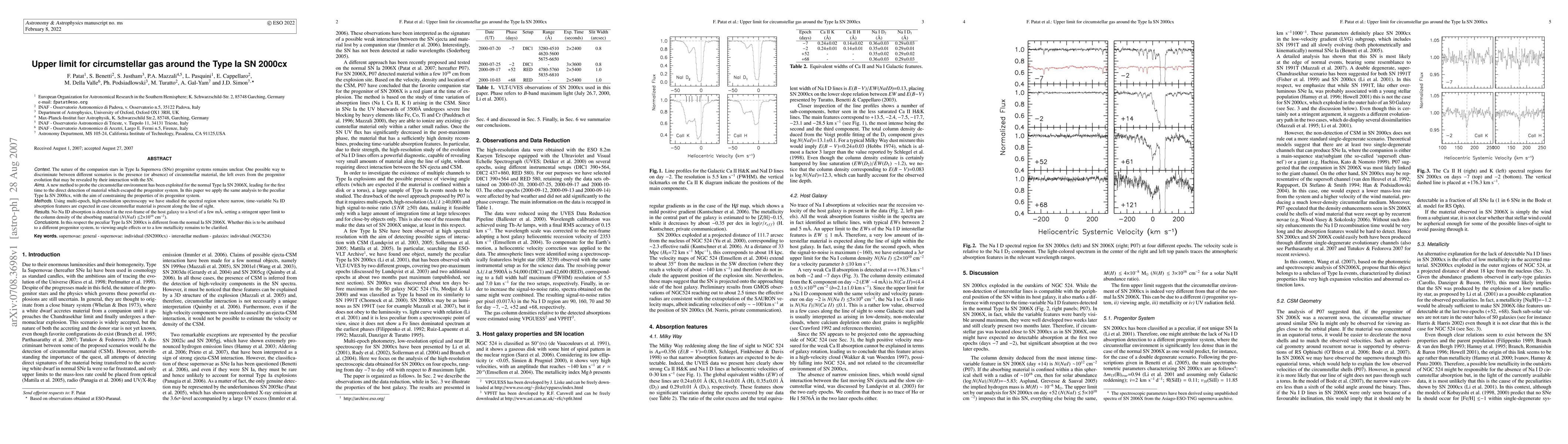 This paper investigates the circumstellar gas around the Type Ia Supernova SN 2000cx using high-resolution spectroscopy, finding no evidence of NaID absorption. This sets an upper limit on the column density of circumstellar material, suggesting a different environment compared to the normal Type Ia SN 2006X.