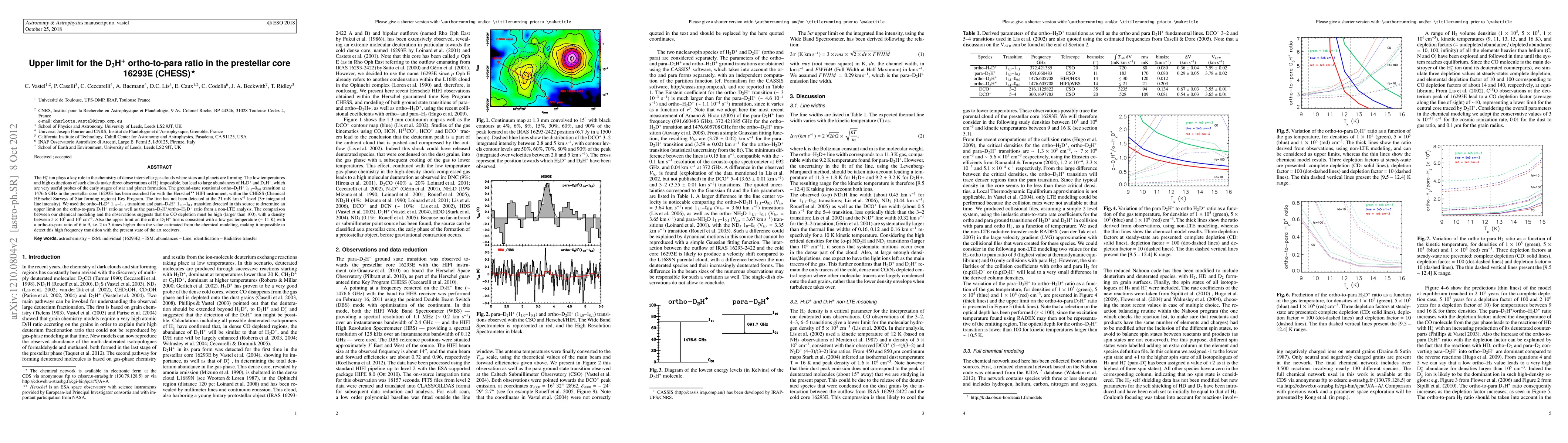 The H3+ ion plays a key role in the chemistry of dense interstellar gas clouds where stars and planets are forming. The low temperatures and high extinctions of such clouds make direct observations of H3+ impossible, but lead to large abundances of H2D+ and D2H+, which are very useful probes of the early stages of star and planet formation. The ground-state rotational ortho-D2H+ 111-000 transition at 1476.6 GHz in the prestellar core 16293E has been searched for with the Herschel/HIFI instrument, within the CHESS (Chemical HErschel Surveys of Star forming regions) Key Program. The line has not been detected at the 21 mK km/s level (3 sigma integrated line intensity). We used the ortho-H2D+ 110-111 transition and para-D2H+ 110-101 transition detected in this source to determine an upper limit on the ortho-to-para D2H+ ratio as well as the para-D2H+/ortho-H2D+ ratio from a non-LTE analysis. The comparison between our chemical modeling and the observations suggests that the CO depletion must be high (larger than 100), with a density between 5e5 and 1e6 cm-3. Also the upper limit on the ortho-D2H+ line is consistent with a low gas temperature (~ 11 K) with a ortho-to-para ratio of 6 to 9, i.e. 2 to 3 times higher than the value estimated from the chemical modeling, making it impossible to detect this high frequency transition with the present state of the art receivers.