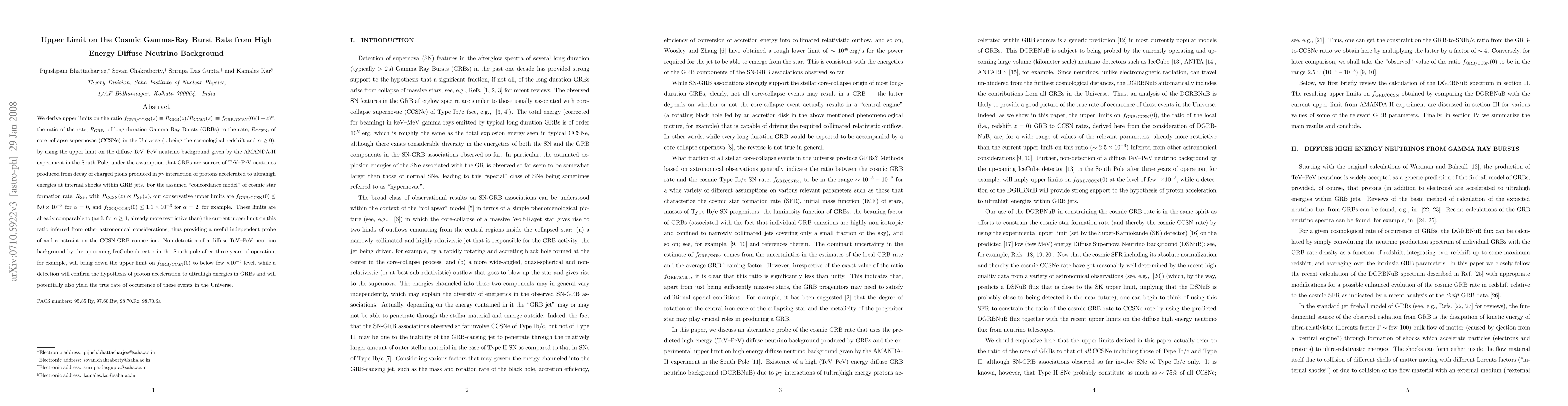 We derive upper limits on the ratio $f_{GRB/CCSN}(z) \equiv R_{GRB}(z)/R_{CCSN}(z) \equiv f_{GRB/CCSN}(0)(1+z)^\alpha$, the ratio of the rate, $R_{GRB}$, of long-duration Gamma Ray Bursts (GRBs) to the rate, $R_{CCSN}$, of core-collapse supernovae (CCSNe) in the Universe ($z$ being the cosmological redshift and $\alpha\geq 0$), by using the upper limit on the diffuse TeV--PeV neutrino background given by the AMANDA-II experiment in the South Pole, under the assumption that GRBs are sources of TeV--PeV neutrinos produced from decay of charged pions produced in $p\gamma$ interaction of protons accelerated to ultrahigh energies at internal shocks within GRB jets. For the assumed ``concordance model'' of cosmic star formation rate, $R_{SF}$, with $R_{CCSN}(z) \propto R_{SF}(z)$, our conservative upper limits are $f_{GRB/CCSN}(0)\leq 5.0\times10^{-3}$ for $\alpha=0$, and $f_{GRB/CCSN}(0)\leq 1.1\times10^{-3}$ for $\alpha=2$, for example. These limits are already comparable to (and, for $\alpha\geq 1$ already more restrictive than) the current upper limit on this ratio inferred from other astronomical considerations, thus providing a useful independent probe of and constraint on the CCSN-GRB connection. Non-detection of a diffuse TeV--PeV neutrino background by the up-coming IceCube detector in the South pole after three years of operation, for example, will bring down the upper limit on $f_{GRB/CCSN}(0)$ to below few $\times10^{-5}$ level, while a detection will confirm the hypothesis of proton acceleration to ultrahigh energies in GRBs and will potentially also yield the true rate of occurrence of these events in the Universe.
