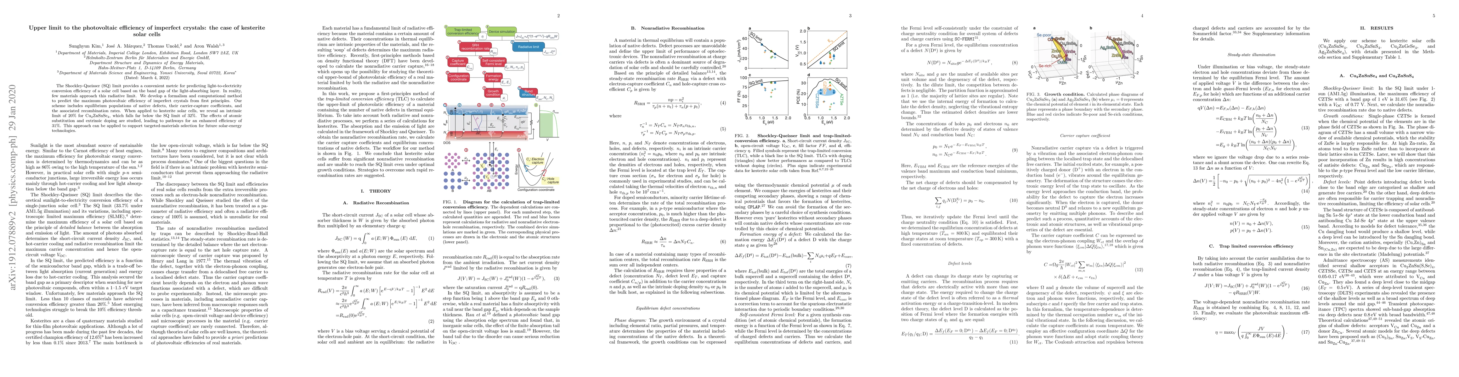 Researchers find that photovoltaic efficiency of solar cells is limited to 20% for imperfect crystals like copper zinc tin selenide, far below the theoretical maximum of 32%. The study provides insights into how materials can be optimized for enhanced efficiency.