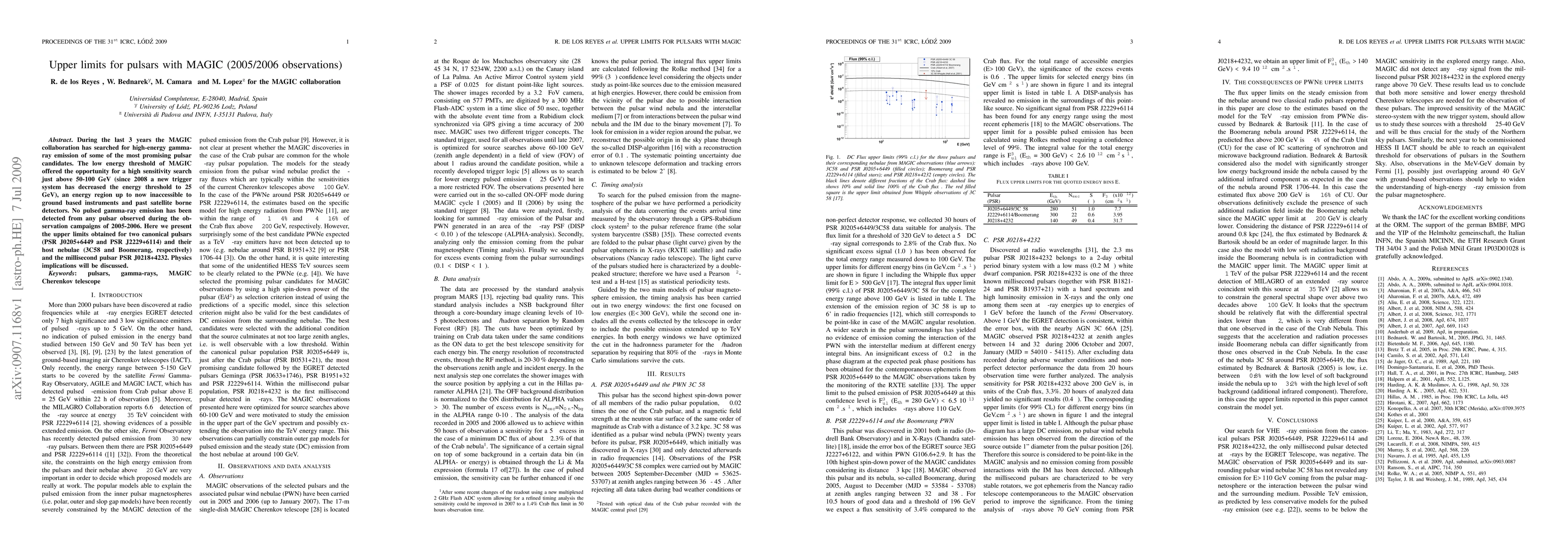 During the last 4 years the MAGIC collaboration has searched for high-energy gamma-ray emission of some of the most promising pulsar candidates. The low energy threshold of MAGIC offered the opportunity for a high sensitivity search just above 50-100 GeV (since 2008 a new trigger system has decreased the energy threshold to 25 GeV), an energy region up to now not reachable to ground based instruments and past satellite borne detectors. No pulsed gamma-ray emission has been detected from any pulsar observed during the observation campaigns of 2005-2006. Here we present the upper limits obtained for tow canonical pulsars (PSR J0205+6449 and PSR J2229+6114) and their host nebulae (3C 58 and Boomerang, respectively) and the millisecond pulsar PSR J0218+4232. Physics implications will be discussed.