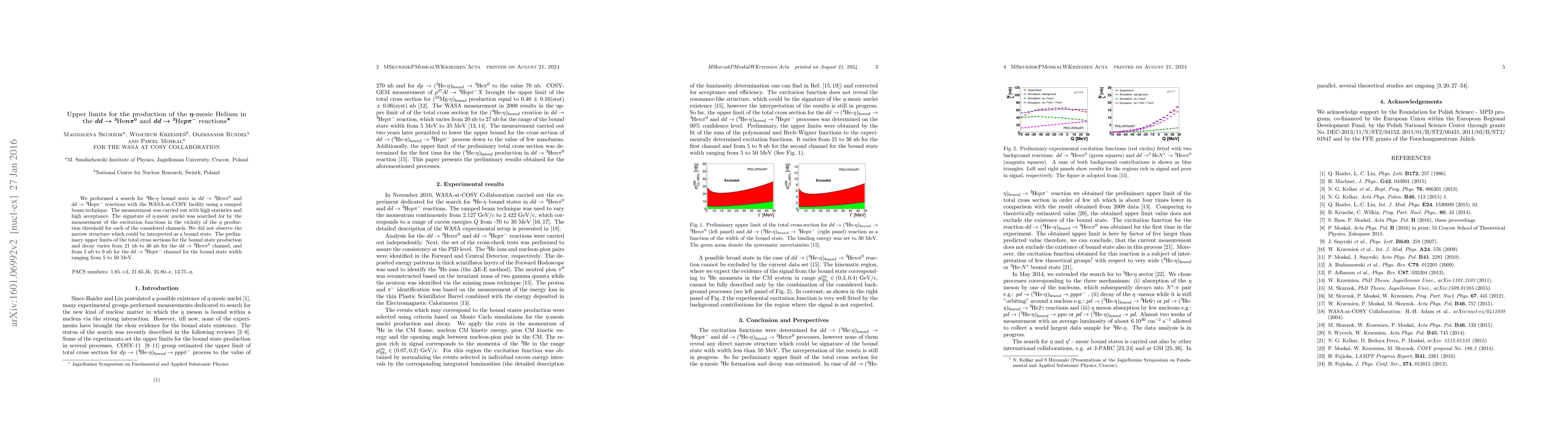 This study searched for a 4He-eta bound state in reactions using the WASA-at-COSY facility, finding no evidence of a narrow structure indicative of such a state. The preliminary upper limits for the total cross sections for bound state production and decay range from 21 to 36 nb for the dd -> 3Henpi0 channel and 5 to 9 nb for the dd -> 3Heppi- channel.