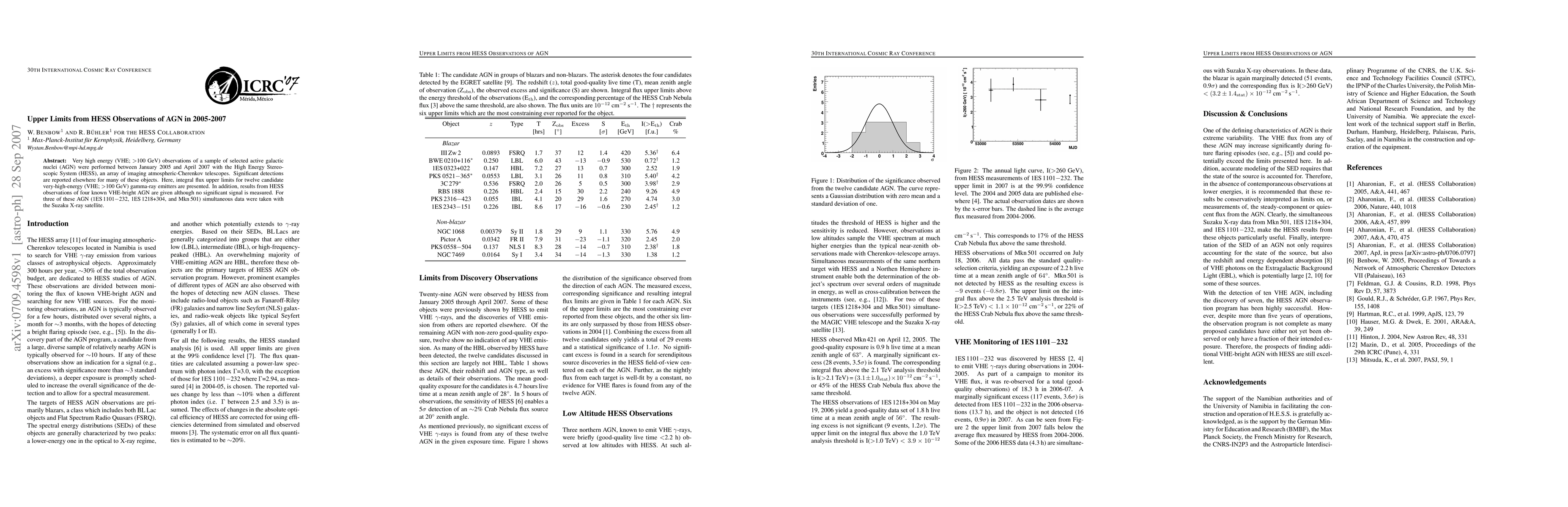 Very high energy (VHE; >100 GeV) observations of a sample of selected active galactic nuclei (AGN) were performed between January 2005 and April 2007 with the High Energy Stereoscopic System (HESS), an array of imaging atmospheric-Cherenkov telescopes. Significant detections are reported elsewhere for many of these objects. Here, integral flux upper limits for twelve candidate very high energy (VHE; >100 GeV) gamma-ray emitters are presented. In addition, results from HESS observations of four known VHE-bright AGN are given although no significant signal is measured. For three of these AGN (1ES 1101-232, 1ES 1218+304, and Mkn 501) simultaneous data were taken with the Suzaku X-ray satellite.