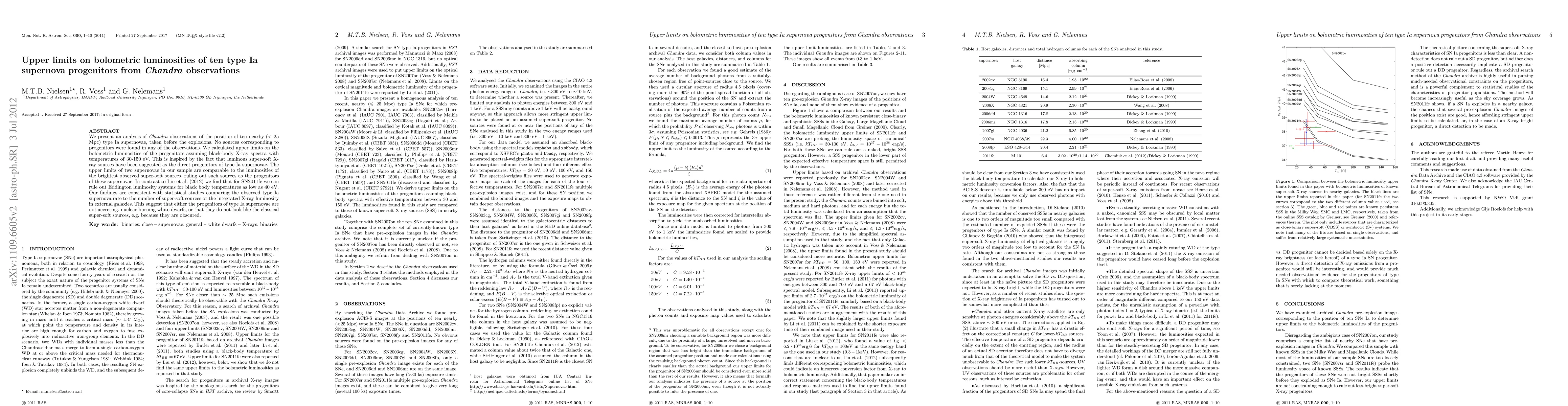 This study uses Chandra observations to set upper limits on the bolometric luminosities of ten type Ia supernova progenitors, finding no sources corresponding to these progenitors. The results suggest that luminous super-soft X-ray sources are unlikely to be the progenitors of type Ia supernovae, supporting the idea that their progenitors may not be accreting white dwarfs or are otherwise obscured.