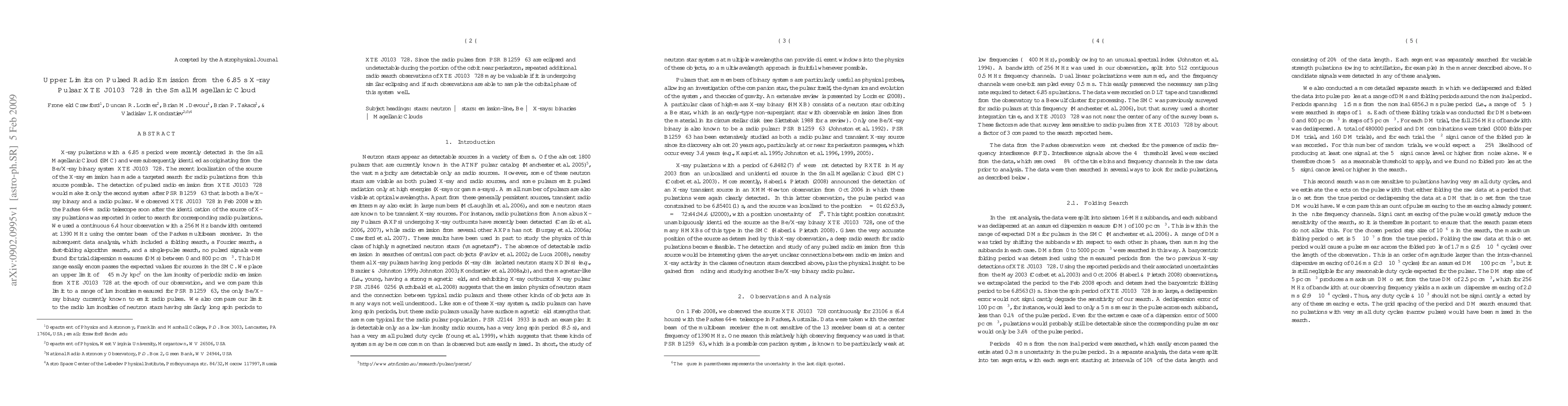 X-ray pulsations with a 6.85 s period were recently detected in the SMC and were subsequently identified as originating from the Be/X-ray binary system XTE J0103-728. The recent localization of the source of the X-ray emission has made a targeted search for radio pulsations from this source possible. The detection of pulsed radio emission from XTE J0103-728 would make it only the second system after PSR B1259-63 that is both a Be/X-ray binary and a radio pulsar. We observed XTE J0103-728 in Feb 2008 with the Parkes 64-m radio telescope soon after the identification of the source of X-ray pulsations was reported in order to search for corresponding radio pulsations. We used a continuous 6.4 hour observation with a 256 MHz bandwidth centered at 1390 MHz using the center beam of the Parkes multibeam receiver. In the subsequent data analysis, which included a folding search, a Fourier search, a fast-folding algorithm search, and a single-pulse search, no pulsed signals were found for trial dispersion measures (DMs) between 0 and 800 pc cm^-3. This DM range easily encompasses the expected values for sources in the SMC. We place an upper limit of ~45 mJy kpc^2 on the luminosity of periodic radio emission from XTE J0103-728 at the epoch of our observation, and we compare this limit to a range of luminosities measured for PSR B1259-63, the only Be/X-ray binary currently known to emit radio pulses. We also compare our limit to the radio luminosities of neutron stars having similarly long spin periods to XTE J0103-728. Since the radio pulses from PSR B1259-63 are eclipsed and undetectable during the portion of the orbit near periastron, repeated additional radio search observations of XTE J0103-728 may be valuable if it is undergoing similar eclipsing and if such observations are able to sample the orbital phase of this system well.